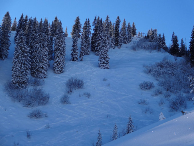 Bis auf die Abfahrt über Hochschelpen vermutlich weiterhin gut. Aber immer weniger unverspurte Hänge.