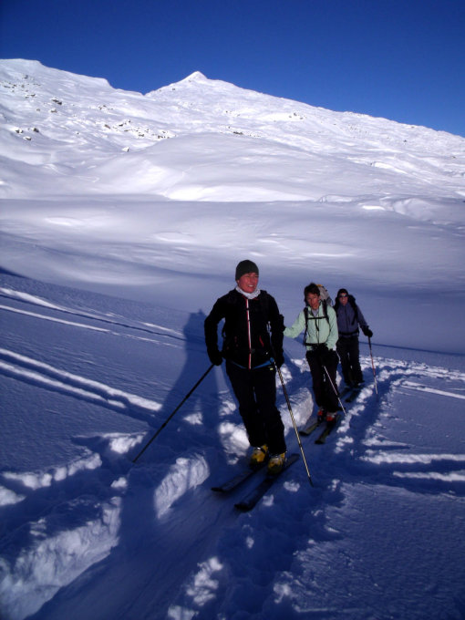Beste Verhältnisse. Es hat nicht übermässig Schnee, aber ausreichend. Wir haben uns in die Steilhänge gewagt, diese jedoch einzeln befahren.