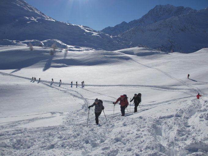Optisch sind die Berge rund um den Simplonpass mit ihren baumlosen weiten Hängen ein richtiges "Wintermärchen", oder ein "Traum in weiss". 1 Tag nach dem grossen Schneefall waren bereits zahlreiche Spuren im Schnee, denen wir folgen konnten.