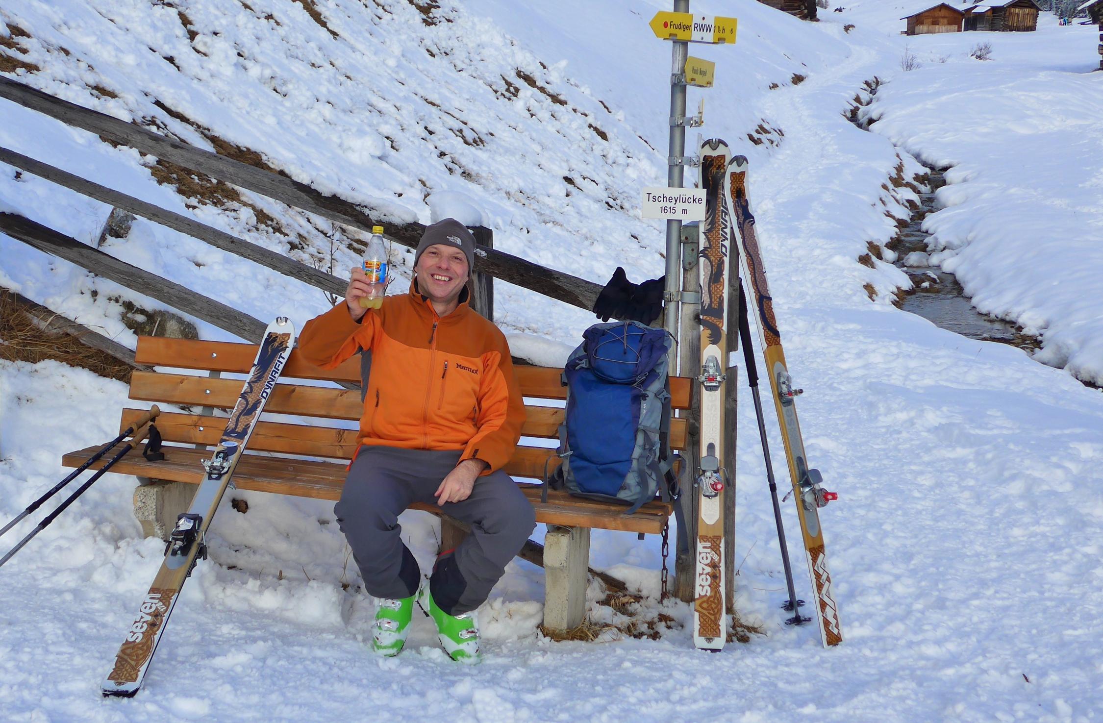 Schöner Pulverschnee am Forstweg und am Waldrand. Fantastisch, die ersten Schwünge in den neuen Skiwinter.