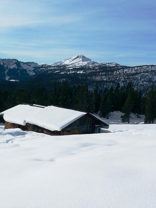 Schneeschuhe ab Pt.1171 angezogen. Als SS Trail mit violetten Stangen und Markierungen bis zur Alphütte Trogen bestens ausgeschildert und gespurt. In den Waldpartien feinster Pulverschnee, ab ca. 1900 m windgepresster Hartschnee, der Grat ist stark abgeblasen und verwächtet. Das Hindernis im schmalen Grat wird zur Zeit westlich umgangen, dank ausgeschaufelter Spur.