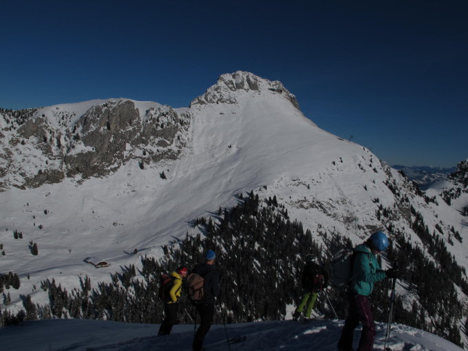 Die Abfahrt nach Reutigen war zuunterst dank hartem Schnee bis ins Dorf möglich. Bester Zeitpunkt abwarten...