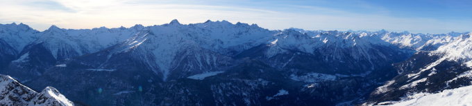 Gipfelgrat stark verblasen und grosse Wächten Richtung Leventina - schön acht geben und genug Abstand zu Kante lassen.
