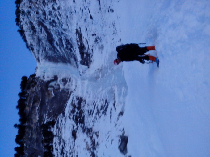 Eine Alte Lawine erleichtert das überqueren des Flusses imens. Schnee gut gesetzt