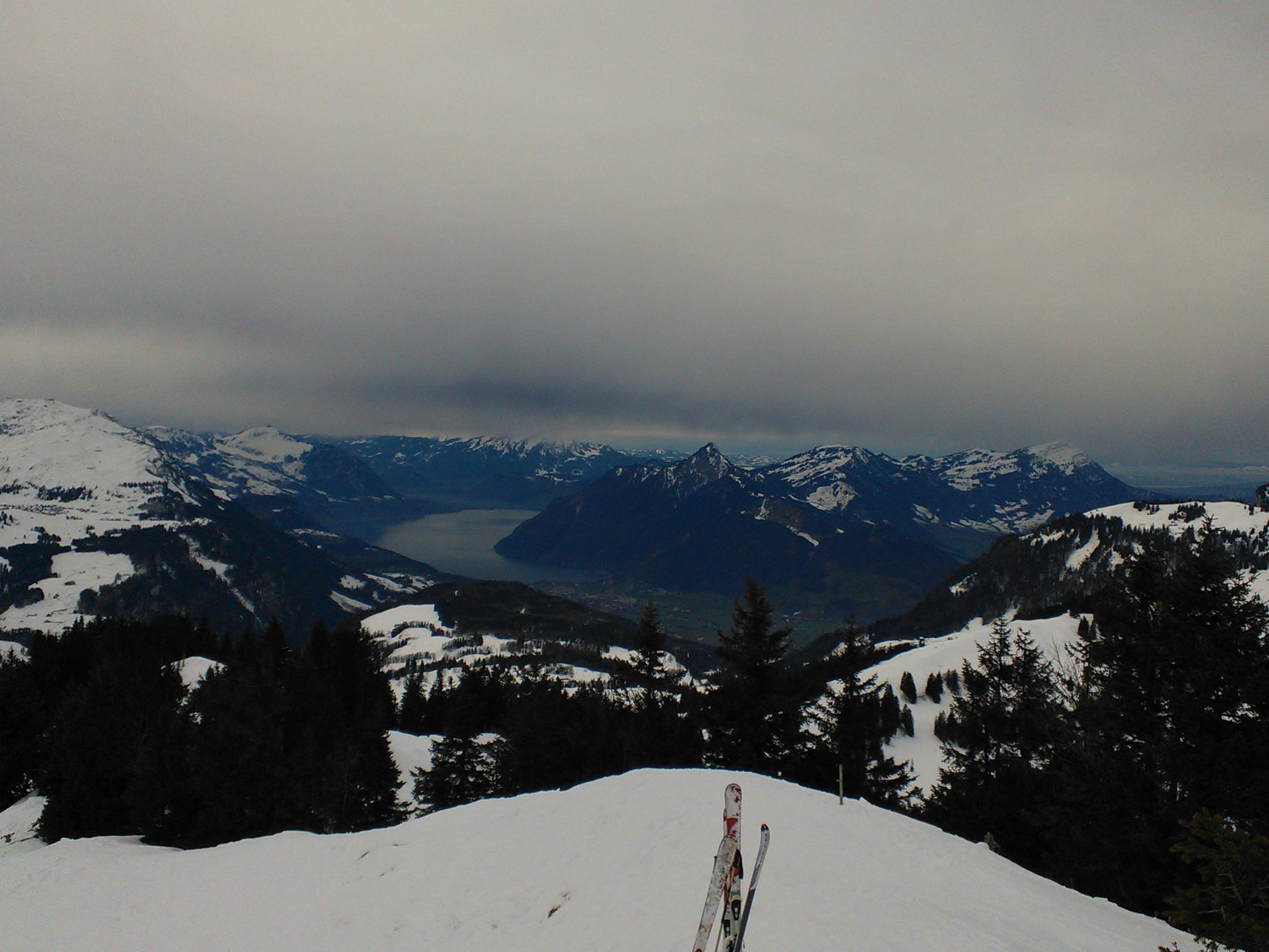 Start spät, erst kurz nach 12 Uhr, als Nachmittagstürli. Wetter bedeckt, aber dank Föhn hell und kein Regen. Temperatur beim Start rund plus 4 Grad. Genügend Schnee ab der Strasse, kein Steinkontakt. Abfahrt bot erfreulicherweise trotz des warmen Wetters noch Pulver und gut schwingbaren Schnee bis fast unten. Es war auch nicht alles verfahren. Nur der letzte Hang war ein bisschen schwer. Insgesamt lohnend.