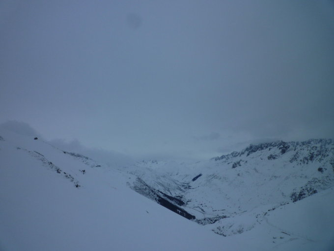 Heikle Abfahrt, da sehr windverblasen, und schlechte Sicht.