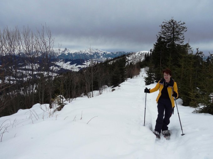 Wunderschöne Tour die ein Panorama bietet, das vom Emmental bis zu den Viertausender reicht. Sehr gut beschildert. Gute Spur. Wir haben die Schneeschuhe erst nach dem Chnübeli angelegt.Von der Losenegg bis zum Bödeli niemand getroffen. Kein Wunder bei der Wetterlage! Vor uns hat ein Wanderer die ganze Tour ohne Schneeschuhen gemacht. Manche Löcher im Schnee sprachen von seiner ausgezeichneten Kondition.