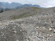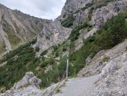 Trocken, eine zu überschreitende Runse von etwa 2.5m Tiefe bereitet keine Schwierigkeiten.