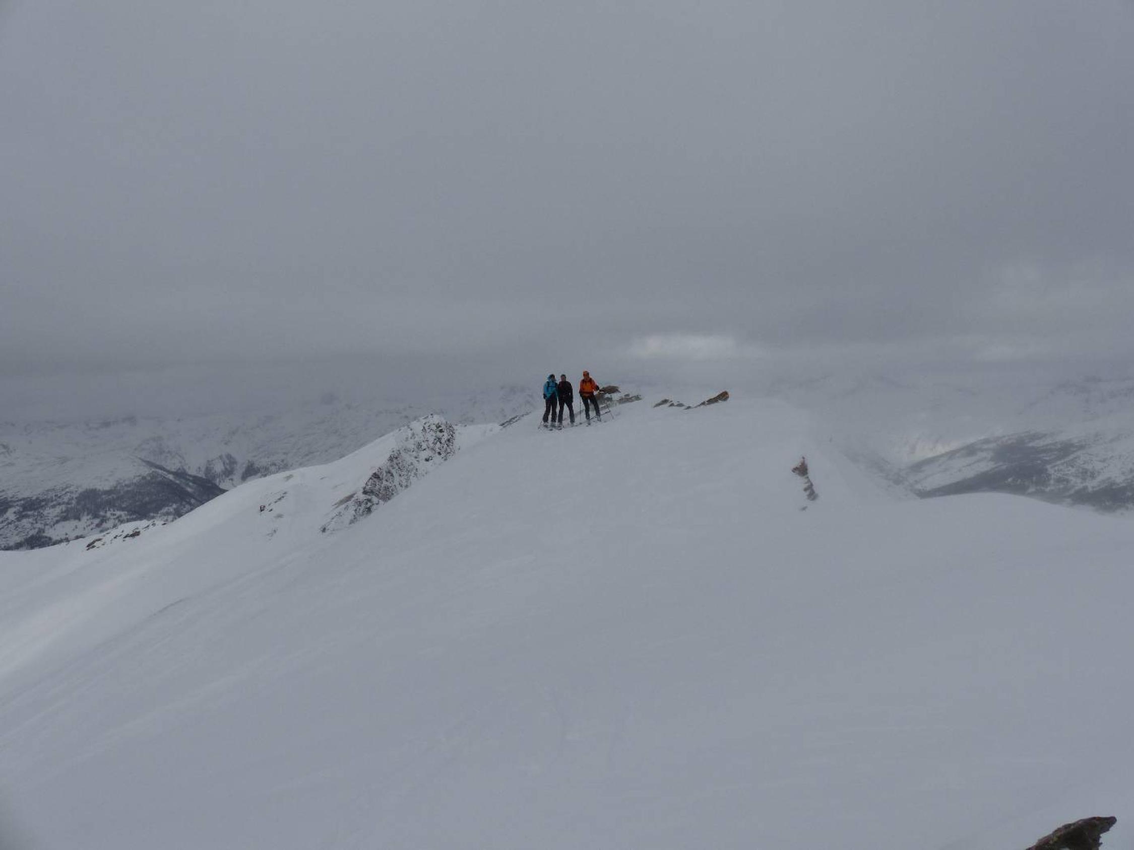 Ab Parkplatz Refuge "La Monta" (1661m) (zwischen Ristolas und L'Echalp) zuerst flach nach ca. Ost dem Sommerweg zum Col Lacroix folgend. Diesen bei ca. 1820m nach links (N) verlassen und über tw. steiles Gelände über "La Lauziere" zur Abflachung "Seille Boeufs" (2100-2150m). Dann die Geländeform nutzend nach ca. O (rechts) in Richtung Kammsystem der Crête de la Combe Morelle. Je nach Verhältnissen früher oder später auf den Süd-Kamm. Diesem zum wenig ausgeprägten Joch bei 2670m folgen. Von dort kann noch Gipfel bei P2741 bestiegen werden. Wir beliesen es beim Joch, da Gipfel abgeblasen und daher skifahrerisch eher uninteressant war.