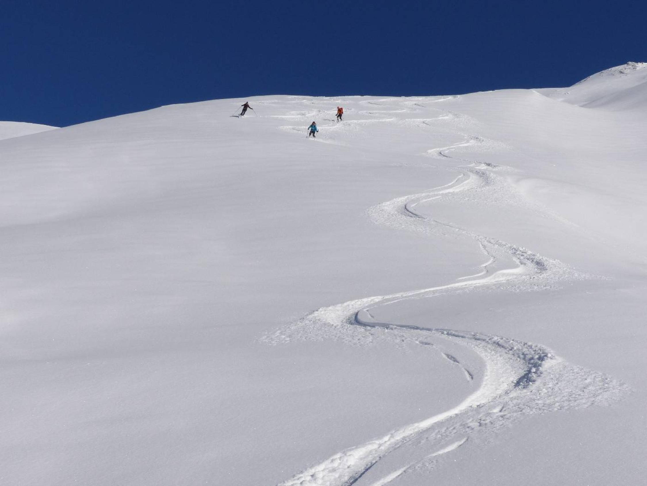 Abfahrt im Bereich Aufstieg, dabei aber die weiten Hänge nutzend