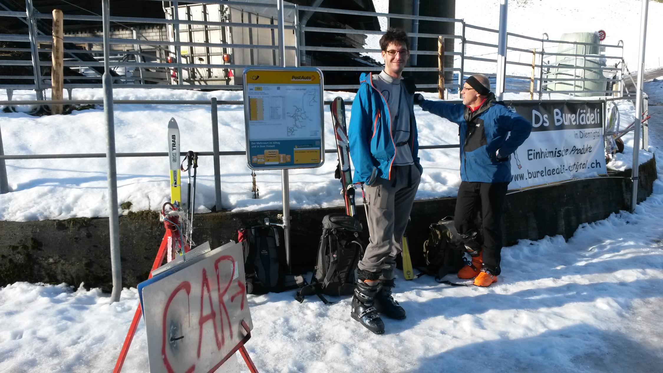 unten mussten wir die ski 2 mal kurz tragen.