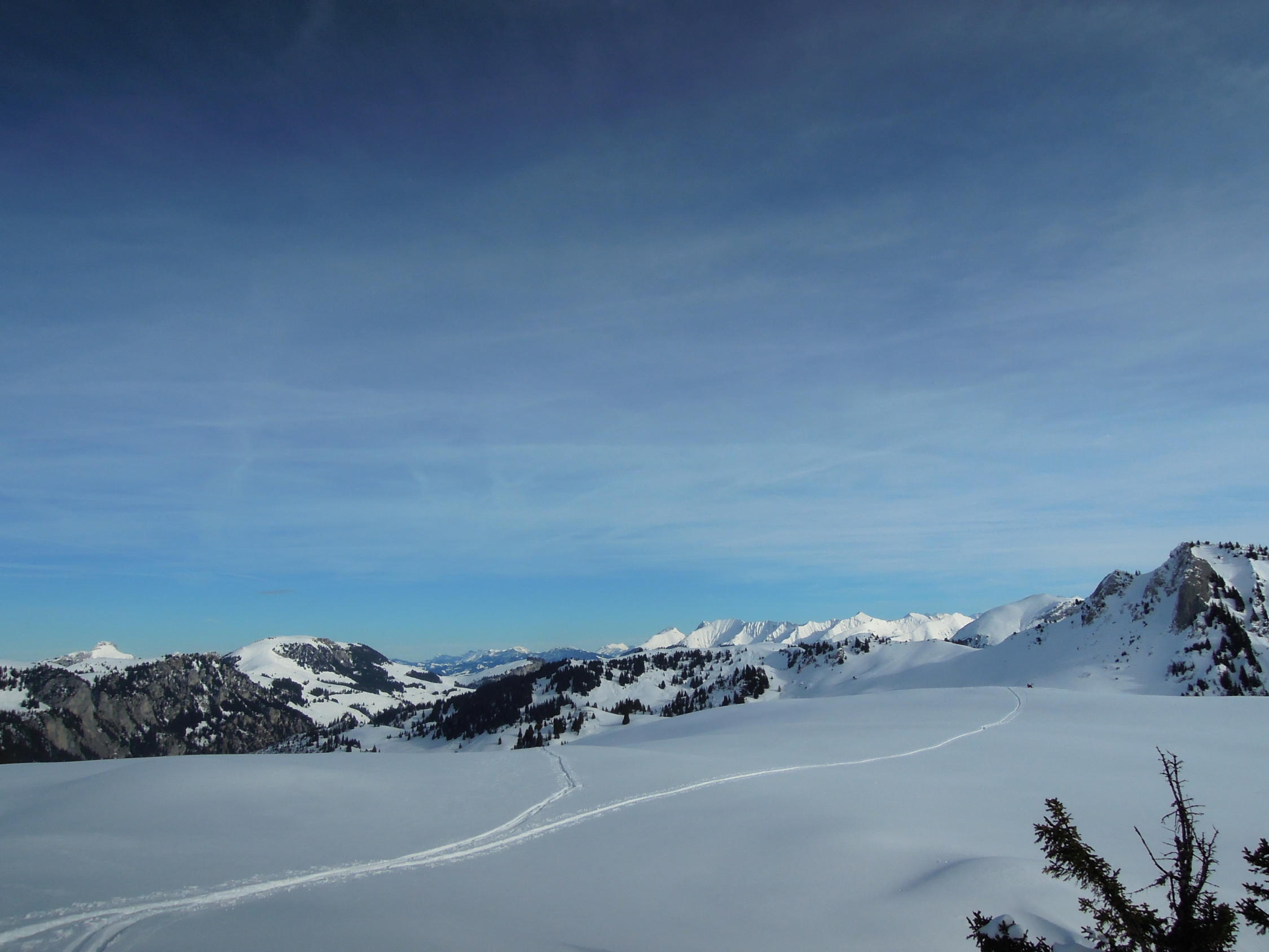 Ab/bis Obergestele super zu fahren. Noch nicht viele Spuren. Genügend aber auch nicht zu viel Schnee. Es sind viele tückische Steine versteckt. Alle bekannten Touren im Gebiet wurden gemacht. Fromattgrad & natürlich Seehore sahen noch jungfräulich aus.