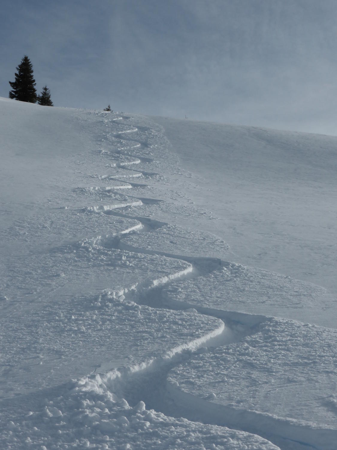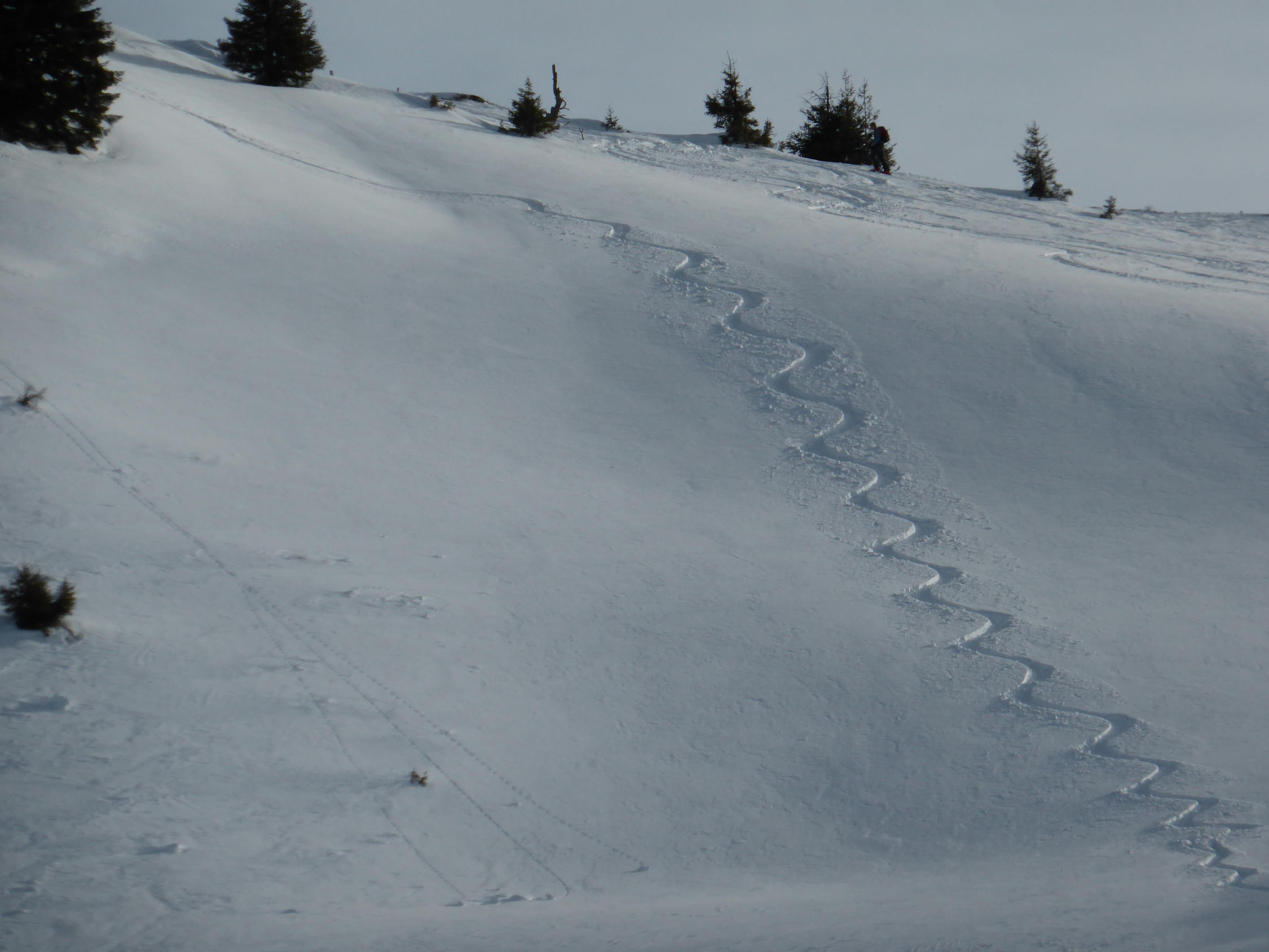 Nass aber pulvrig. Nicht zu viel Schnee - und nicht zu wenig. Kein Steinkontakt. Stölle wie Hundspündtla!