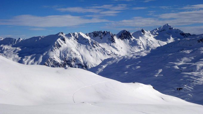 Es hat genug Schnee, sogar Pulver ist vorhanden. Heute war wegen Zeitmangel und erheblicher Lawinengefahr der Stotzige Firsten dran.