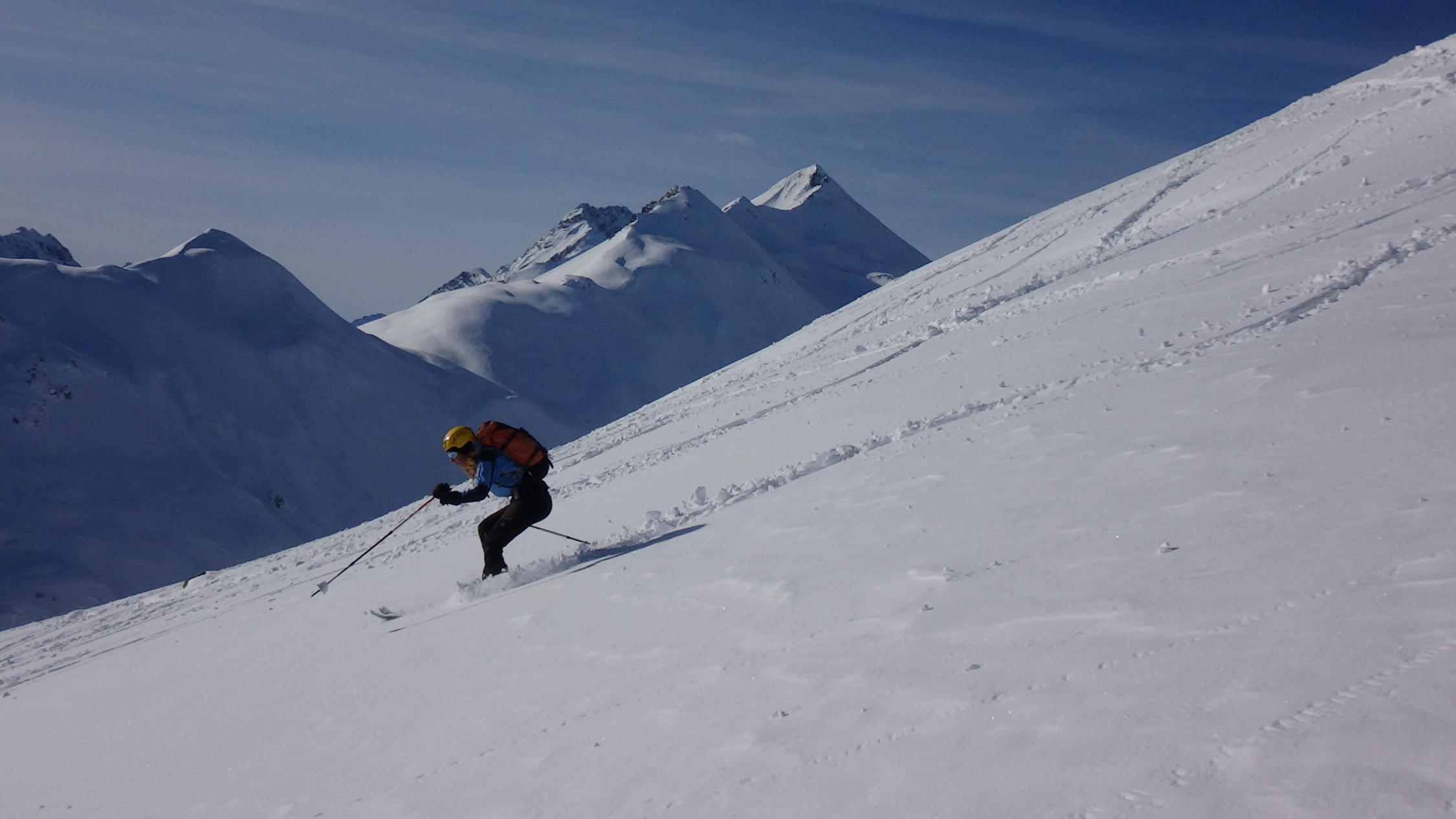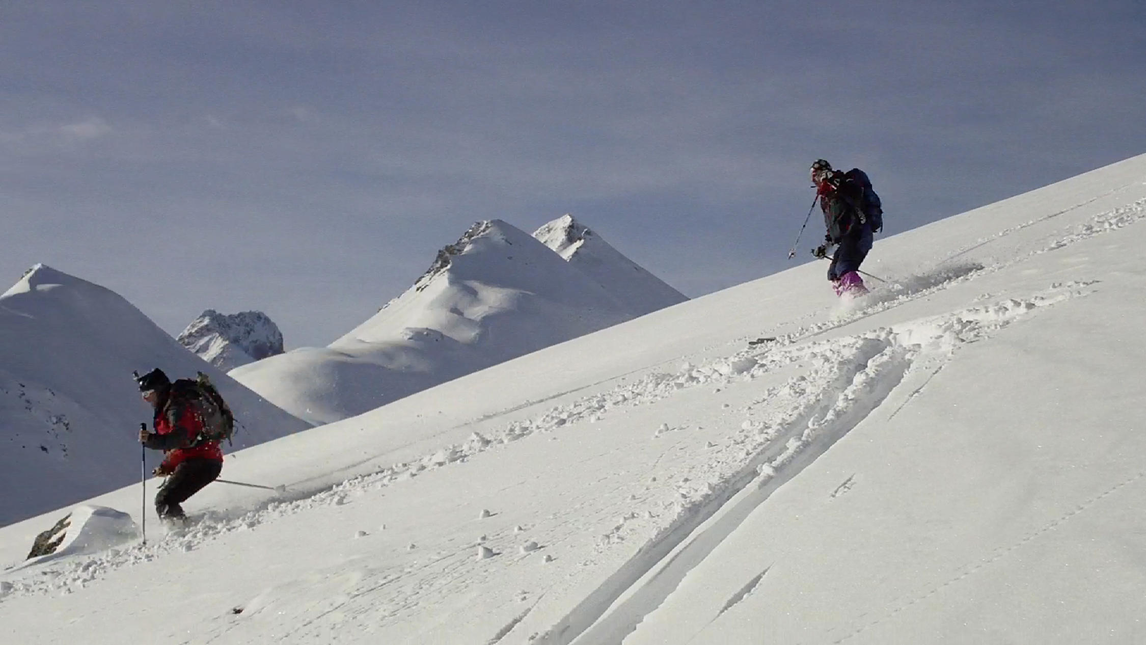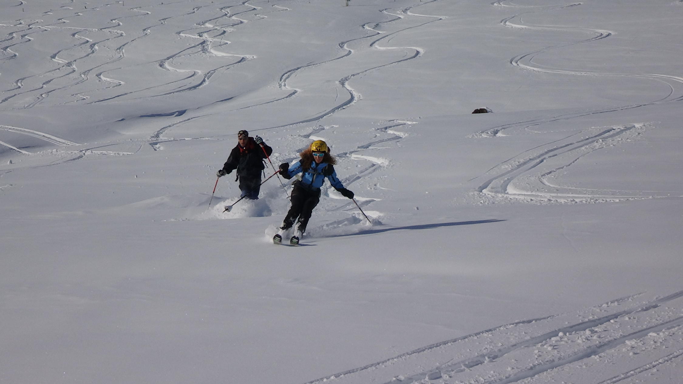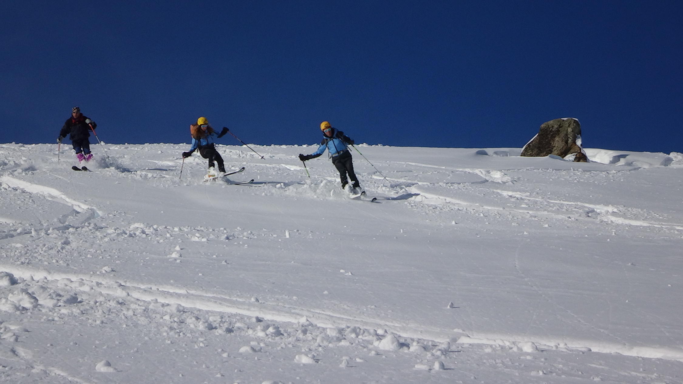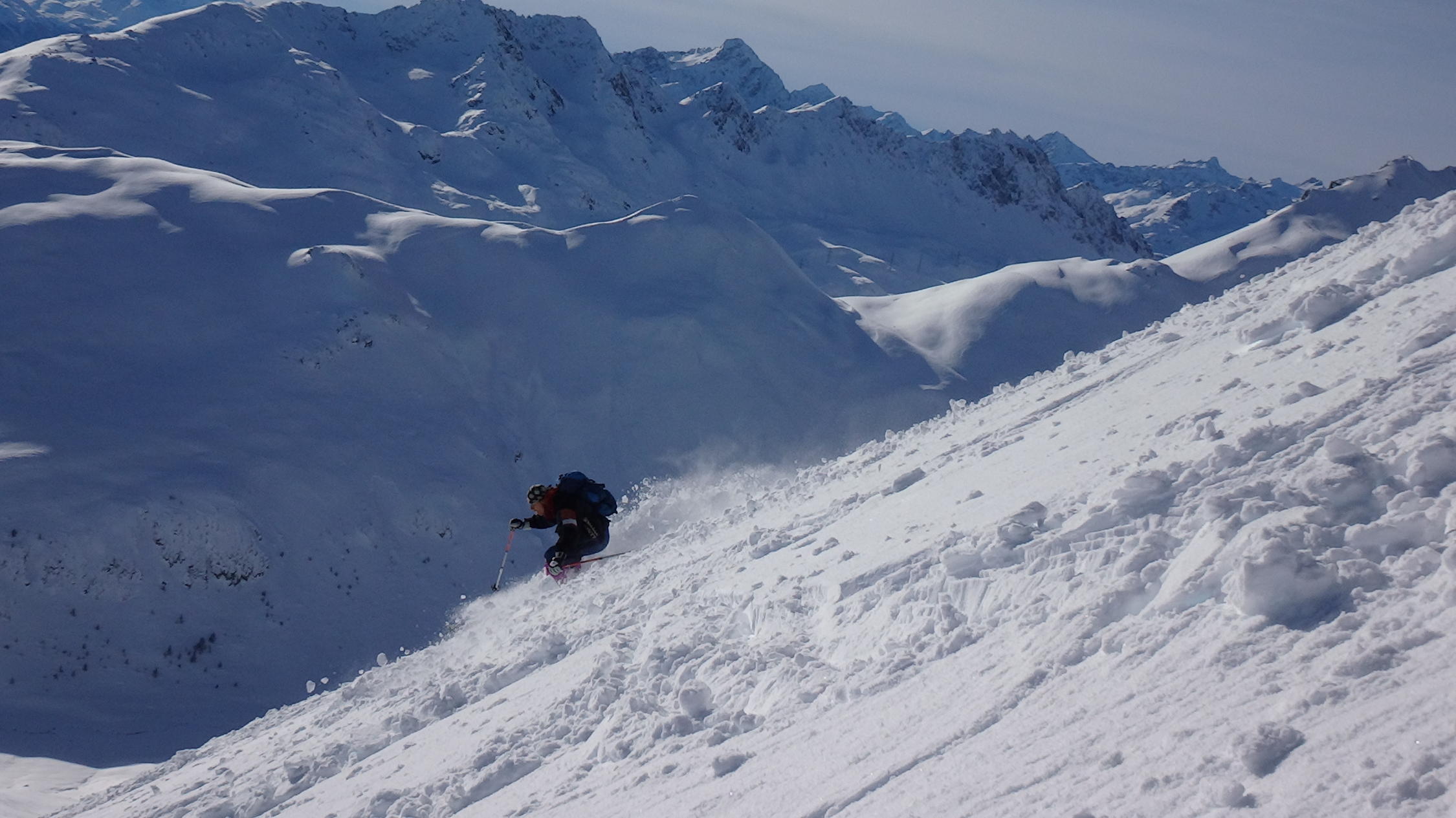 Einige Felsen Von gipfel, bis etwa 2700m,dann gut pulverschnee , aber ein wenig windpress.
