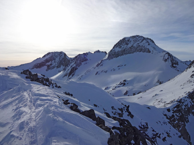 Aufstieg: alles bereits gespurt. Pickel/Steigeisen am Lecki- und Muttenhorn nicht notwendig.