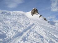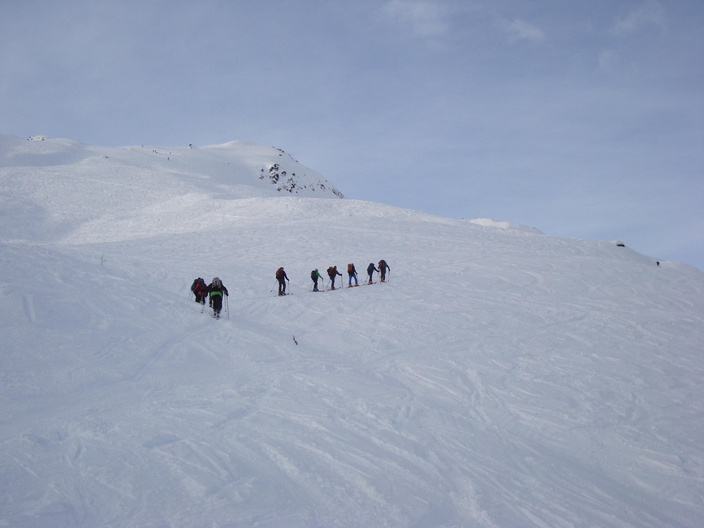 Über die Verhältnisse am Berg hat "Abseilpunkt" schon treffend berichtet. Erwähnenswert wäre vielleicht, dass die Aufstiegsspur im Gipfelhang z.T. recht glatt ist. Das heisst, wer unsicher ist, sollte die Harscheisen mitführen.