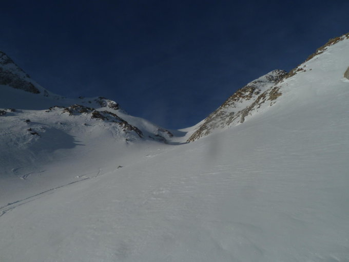 Rottällihorn ist ebenfalls gespurt. (Kurz vor Passhöhe rechts ab)