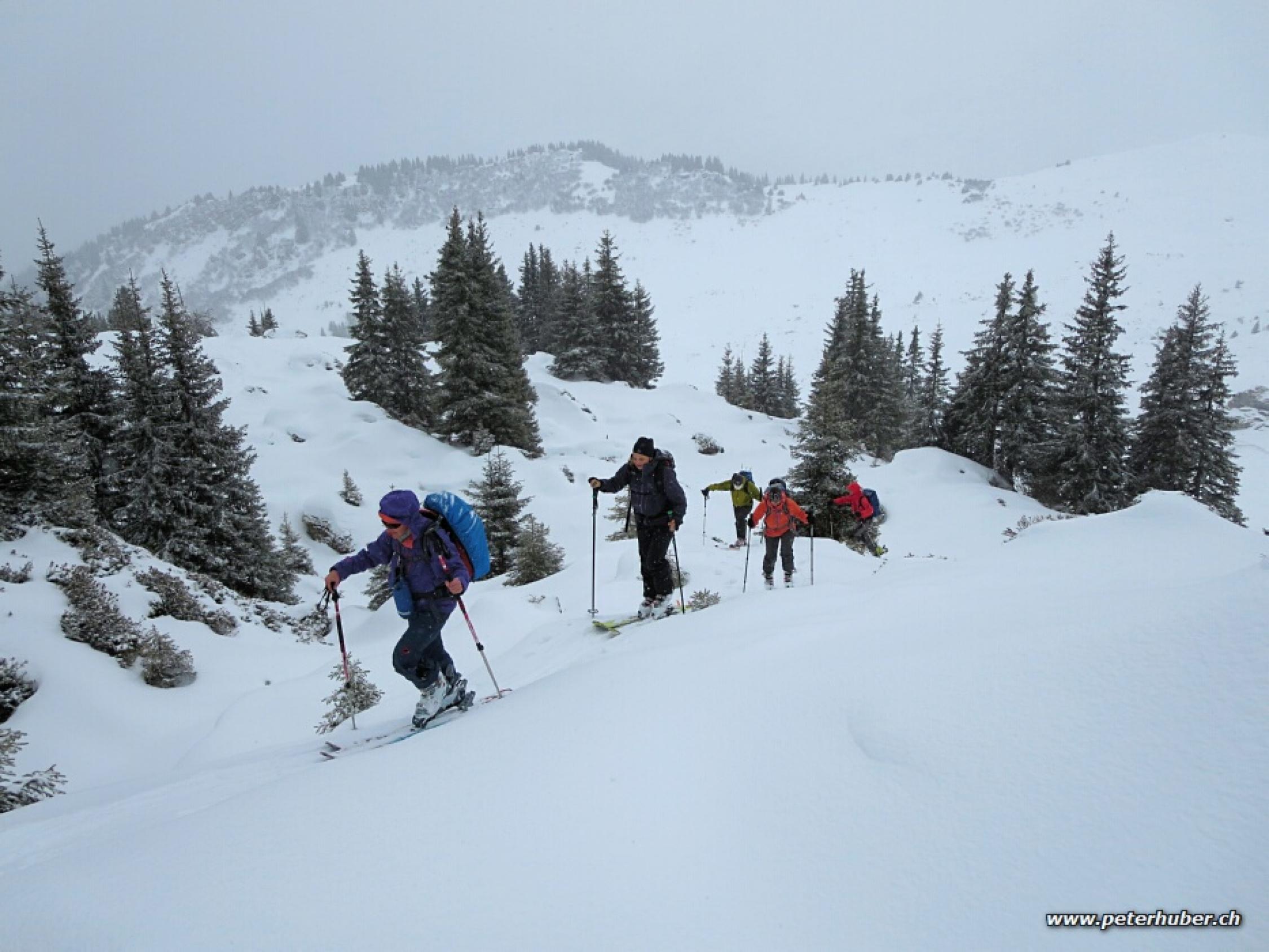 Insgesamt hat es ab Schönhalden genug Schnee für eine Tour. In der oberen Hälfte wurde viel Schnee weggeweht oder an den Südhängen weggeschmolzen. Für die Jahreszeit fehlt viel Schnee.