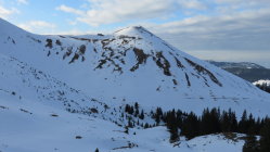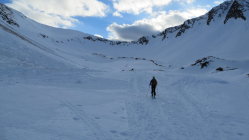 Wir sind erst um 14.30Uhr gestartet und die Schneedecke war bis 1800m nass darüber tragend.