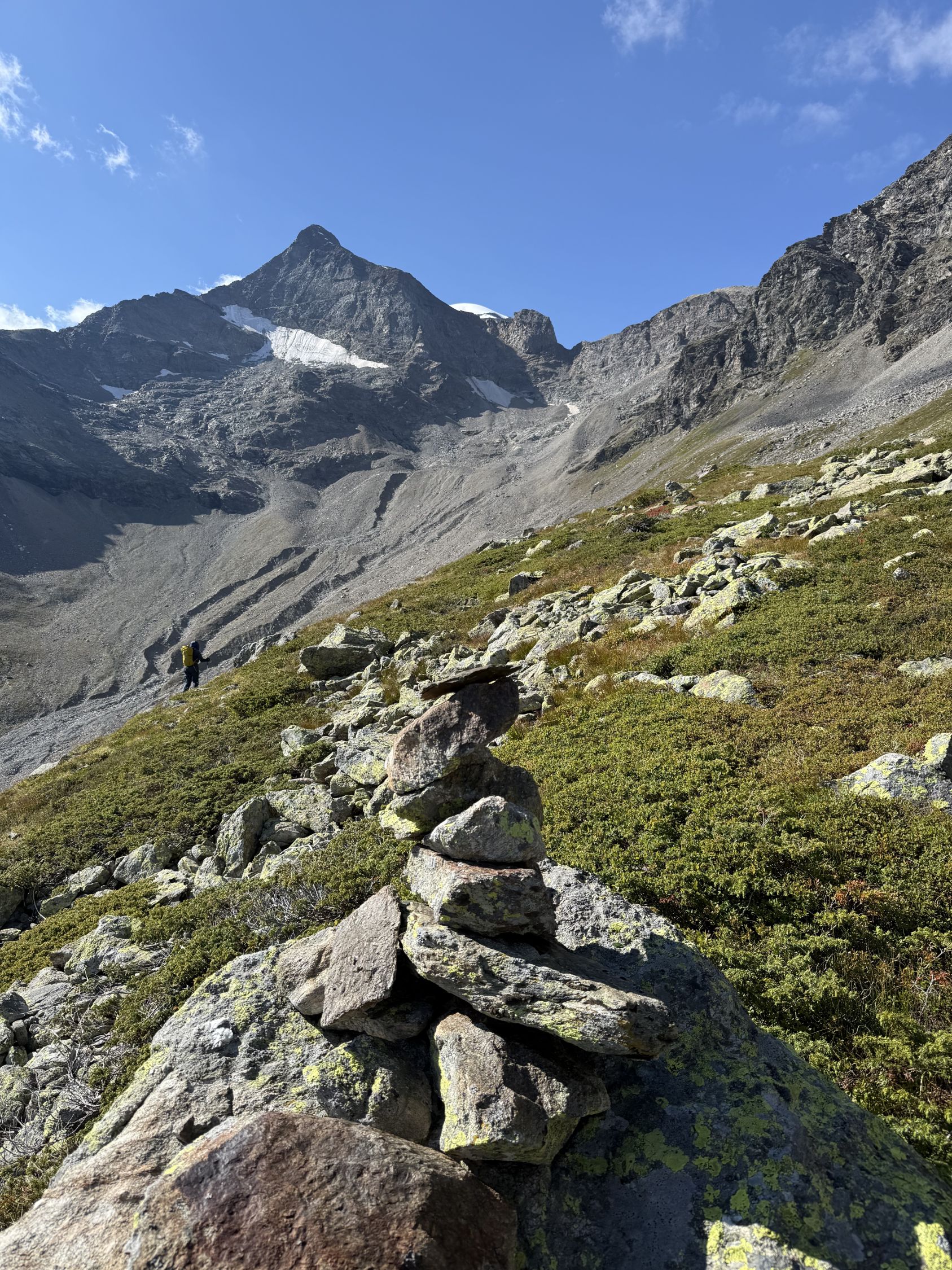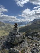 Interessante Rundtour auf den Aussichtspunkt oberhalb Lej da Diavolezza, T3, ÖV Tour. Start Bahnhof Lagalb, 8.30, erstes Postauto ab Samedan, 5 Grad, Nordwind, kalt. Auf Wanderweg bis Alp Buond Sur, ab Alp Wegspuren, aber markiert, ab Höhe 2350 m Wandererweg bis Punkt 2611, Abstieg via Muots Ravulaunas, ab Punkt 2487 ziemlich gerölliger und ruppiger Wanderweg.