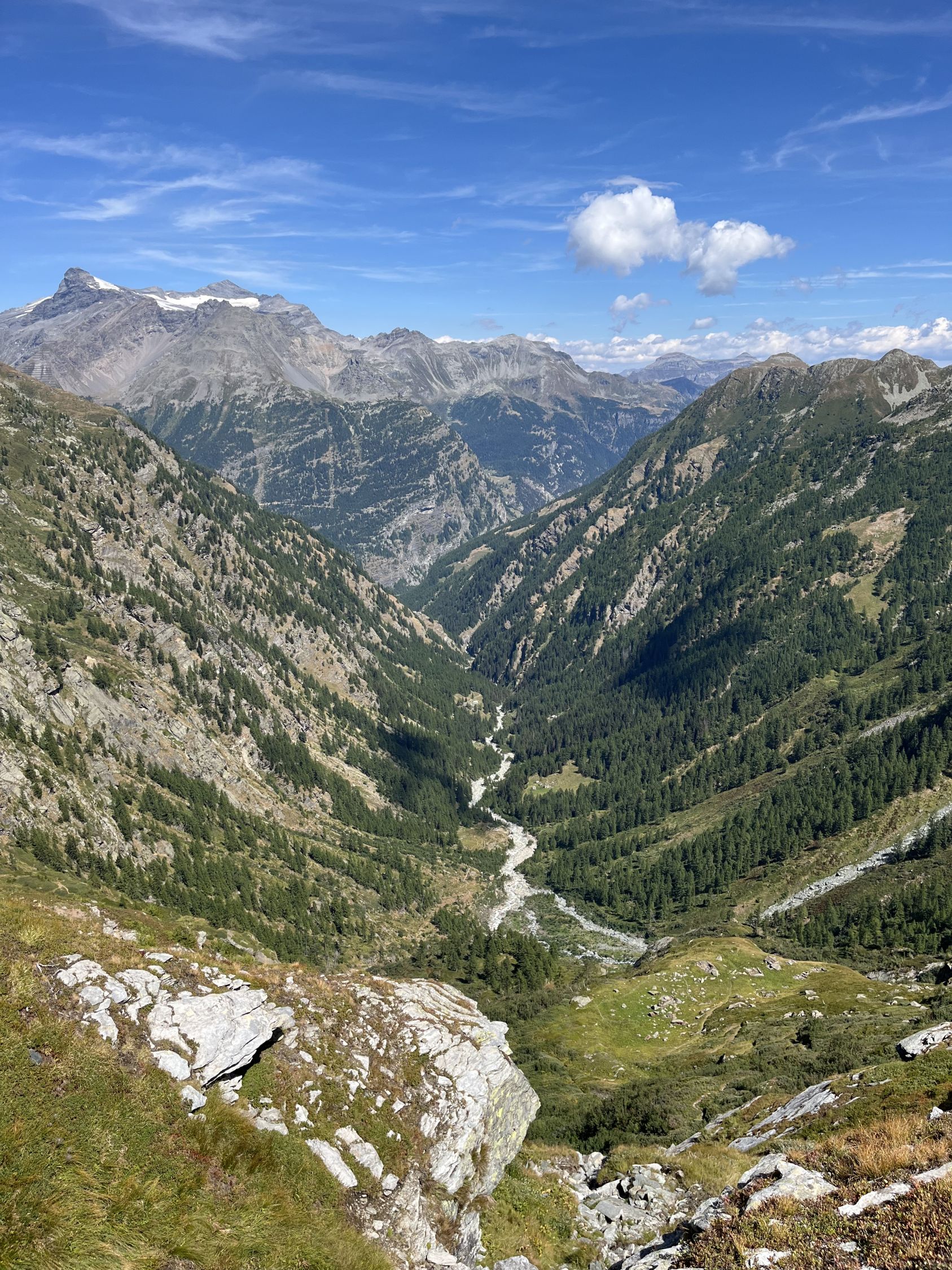 Abstieg dann via Bidemji nach Laggin und retour nach Simplon Dorf. Die Brücke über den Bach, der vom Laggingletscher kommt, ist vorhanden (aber schmal) - offiziell ist der Weg gemäss Karten-App gesperrt.