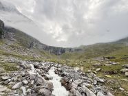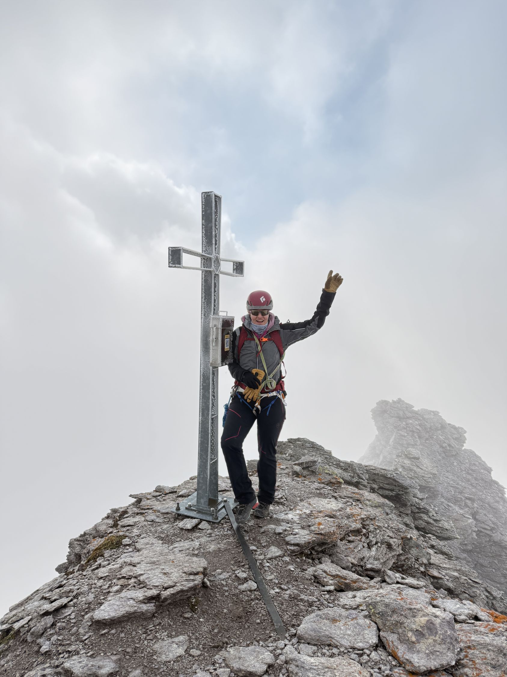 Kalt, etwas eigeschränkte Sichtverhältnisse durch die Bewölkung, die Wegfindung war aber einwandfrei durch die Steinmänner, Eisenstangen (Abstieg) und Pfadspuren.