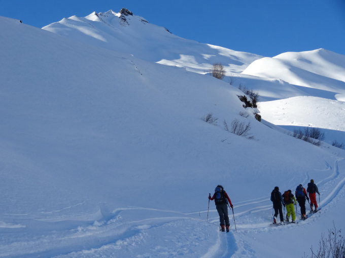Tour mit Naturfreunden Rheintal www.bergsportrheintal.ch, kurzfristige Ziel Wahl nach einer Erkundungstour Vortag etwas abseits der Massen, da geplante Tour nicht möglich war. Nebst uns noch 3 weitere Personen am Berg, grössere Gruppen mit Schneeschuhen auf Obersiez