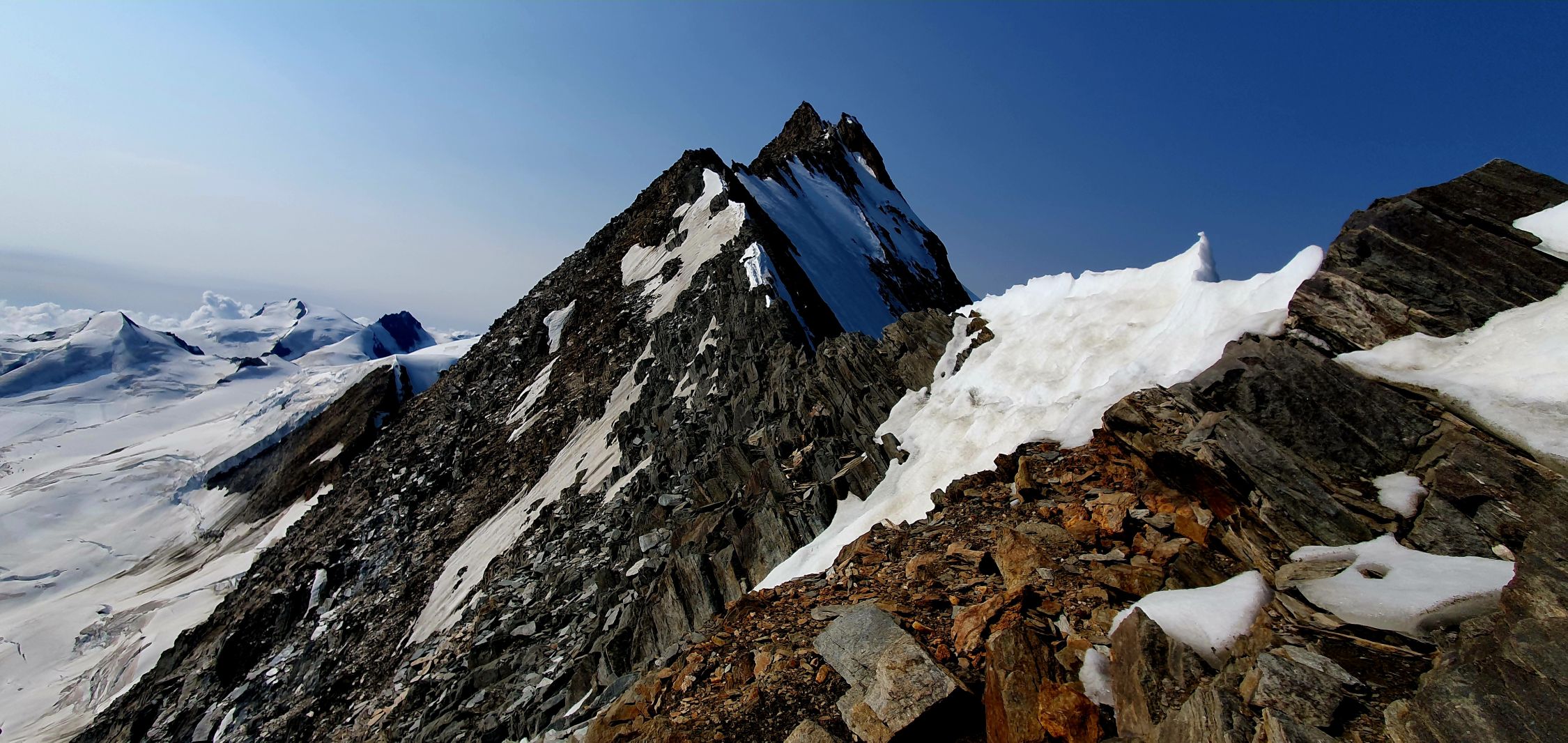 Grat zum Domjoch nur Restschnee der aber nicht beim Klettern hindert.