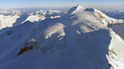 Ab Adlerpass: Der Rücken am P.3954 ist abgeblasen, über einige Meter hartes Blankeis. Gipfelebene windgepresster, vereister Schnee. Letze 50m zum Gipfel kaltes, hartes Blankeis (vgl. Foto).