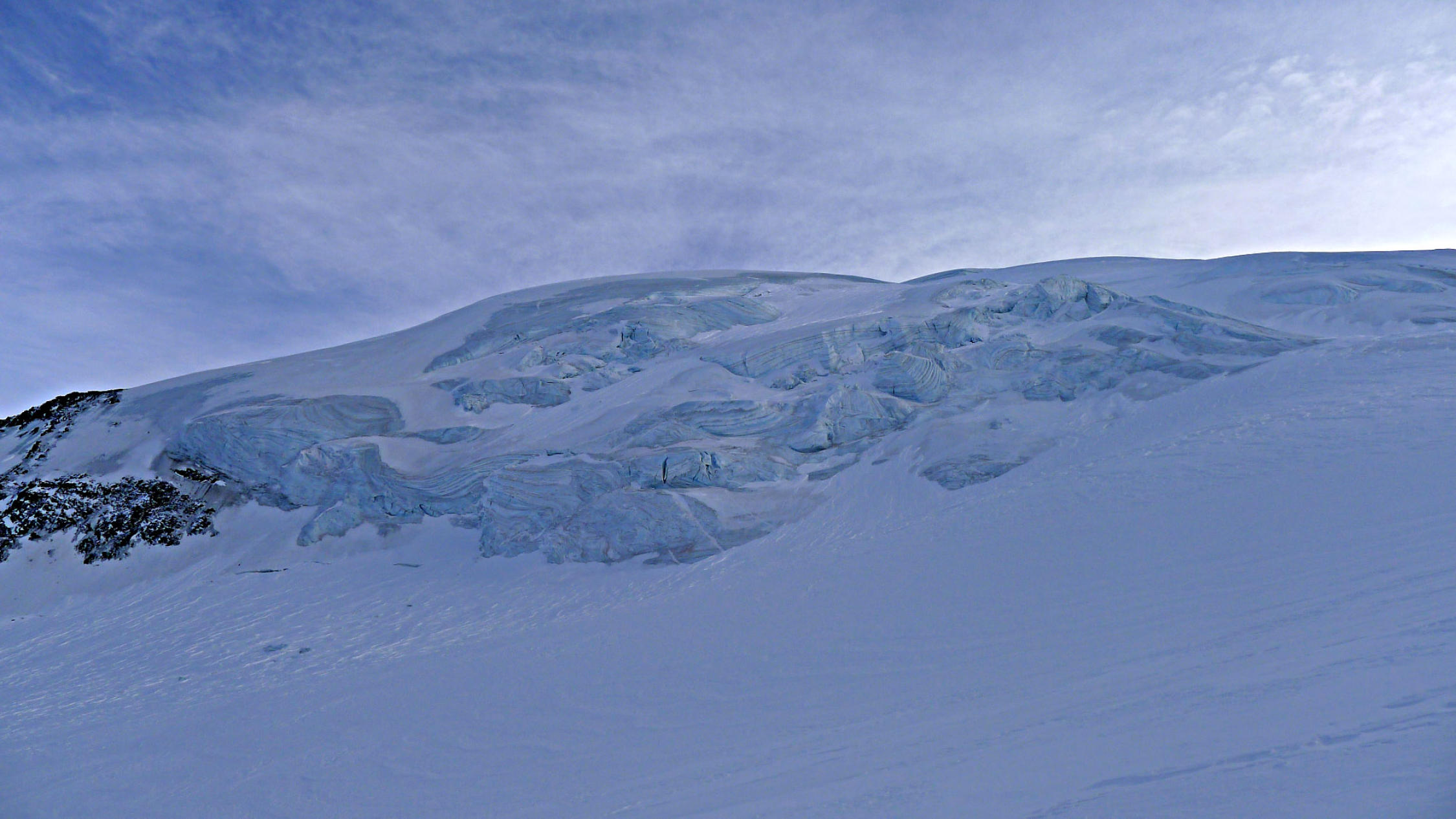 Traverse Hütte - Hohlaubgletscher, ca. 35° steil.
