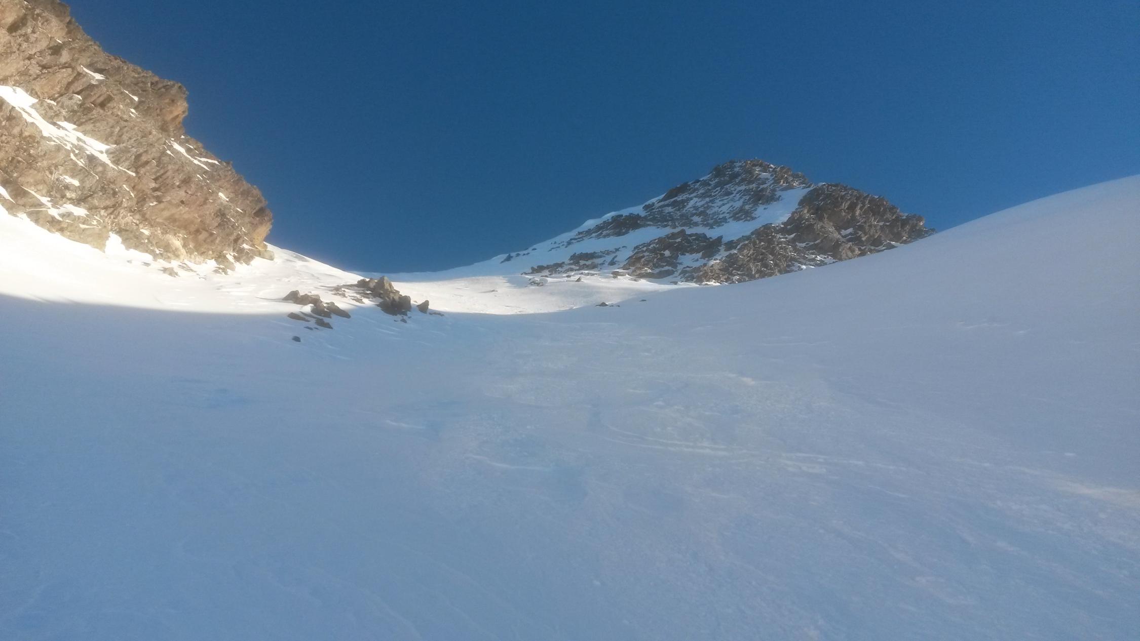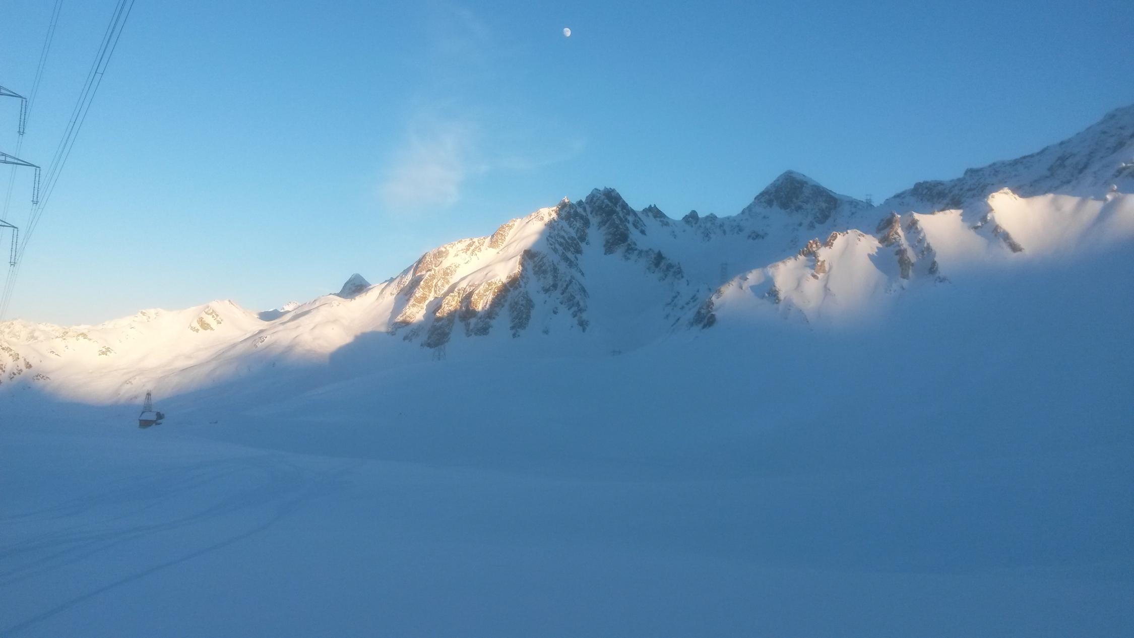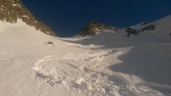 Fast überall recht guter Pulver, wenig Windeinfluss. Das NW-Couloir des Pizzo Grandinagia und das WNW-Couloir am Marchhorn jungfräulich und super zu fahren. Beim NW-Coulour des Pizzo Grandinagia ist im mittleren Teil nur der von oben gesehen rechte, etwas größere Arm gut zu fahren, der linke Arm braucht noch Schnee.