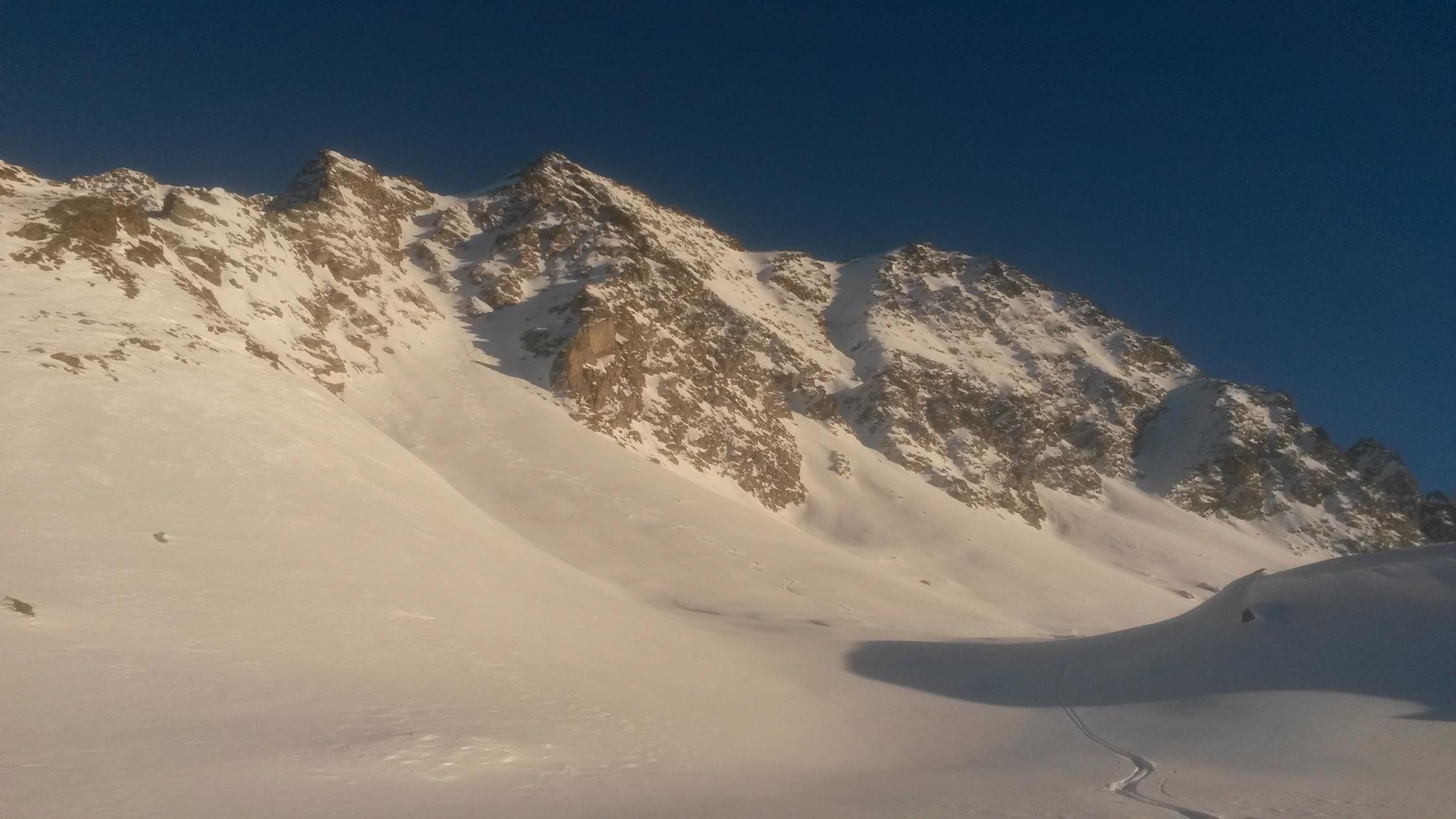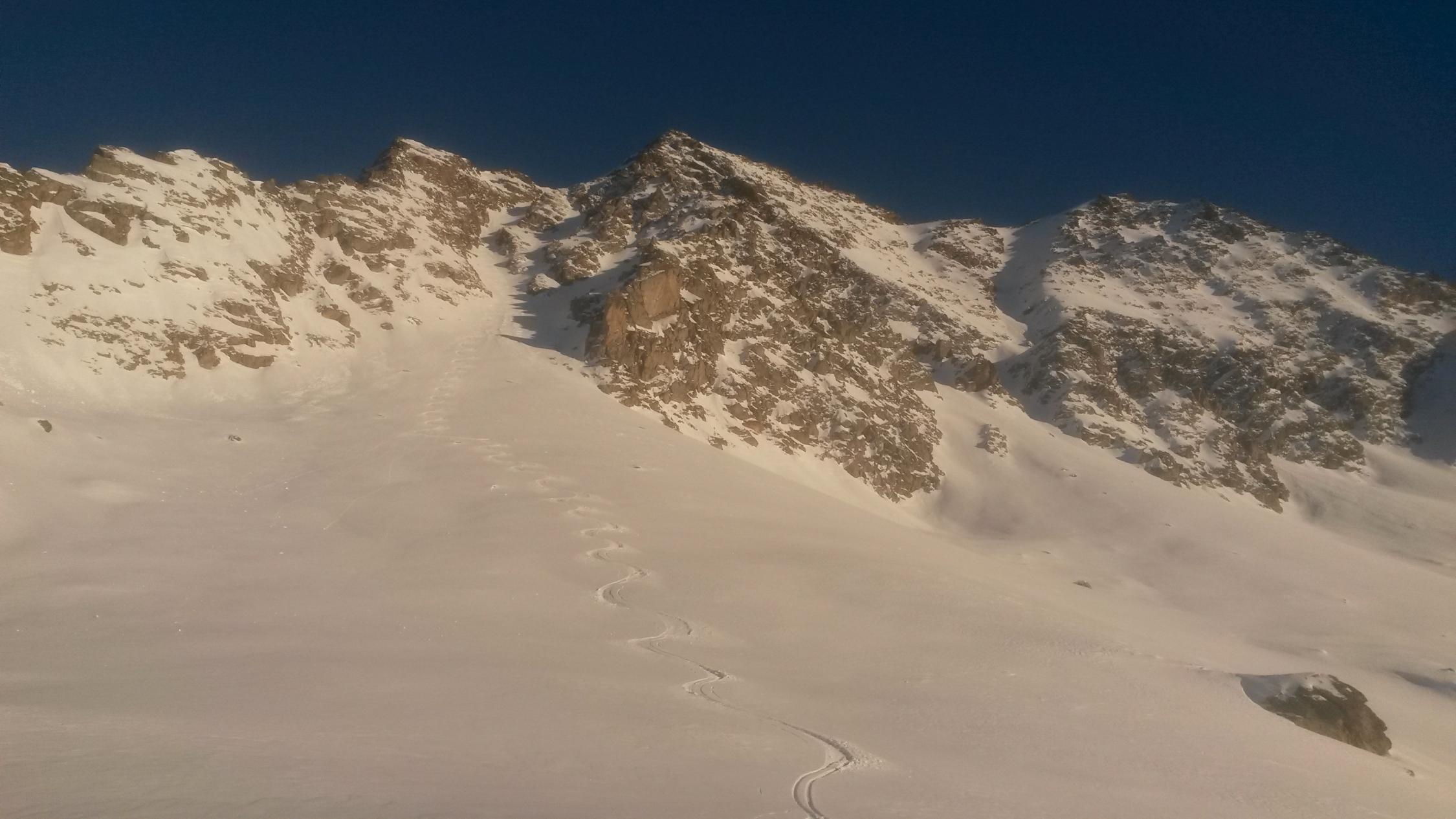 Pizzo San Giacomo war schon über die Flanke eingespurt, für den Abstieg fand ich das Couloir auch besser.