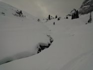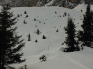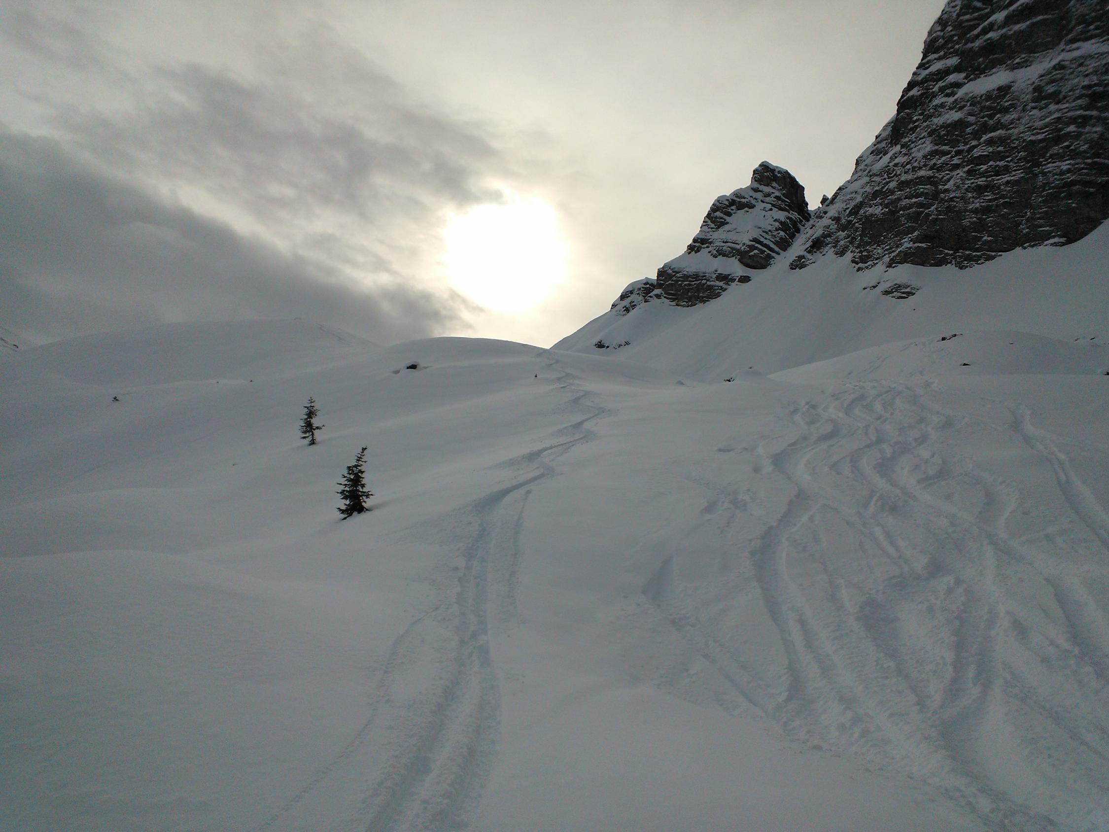 Das ist halt so in diesem "Winter", kaum schneit es mal ein paar Zentimeter, schon meldet das Bulletin Lawinengefahr Stufe 3, und die Tourenauswahl richtet sich nicht mehr nach dem Wünschbaren, sondern nach dem gefahrlos Machbaren. Das Rauflihorn ist so eine machbare Tour, also hopp. Beim Start plus 1 Grad, es ist nun wieder alles schneebedeckt. Wetter bedeckt, der Föhn hielt die vorhergesagte Front aber die ganze Zeit über in Schach. Zeitweise milchiger Sonnenschein. Ganz ok. Aufstieg problemlos, zweimal Ski kurz abziehen im Wald. Gipfelrast fiel dann dem stürmischen Wind zum Opfer, ich habe sie weiter unten bei der Alphütte nachgeholt. In der Abfahrt ist der Gipfelhang - wie so oft - windgeprägt, es lässt sich aber auch noch Pulver finden. Von der Furgg bis zur Alphütte super, Pulverschnee und viel Platz für eigene Spuren! Dann mit zweimal kurz Ski abziehen auf der Strasse problemlos bis zum Auto. Schnee schon unterhalb Alphütte durchfeuchtet...