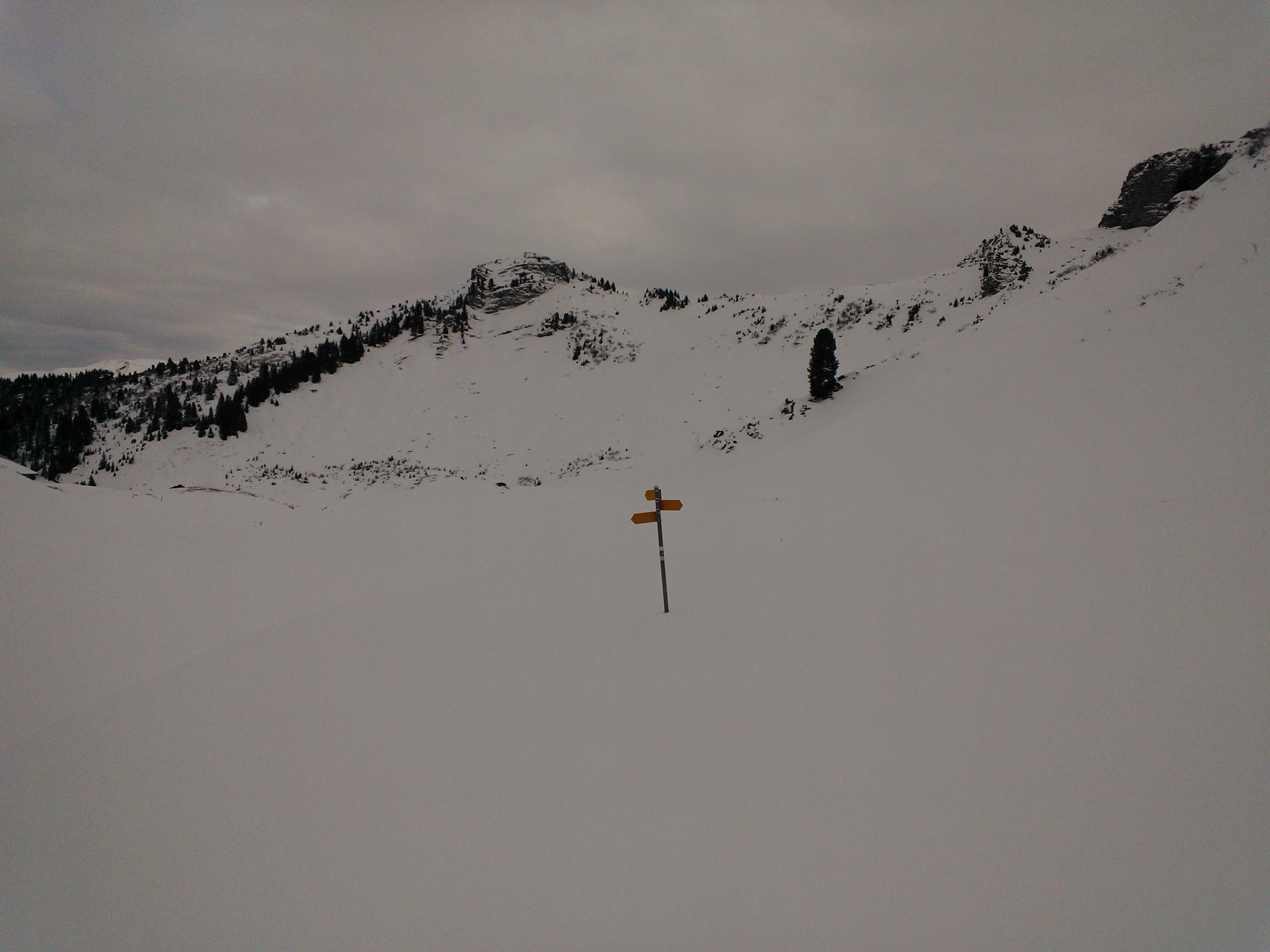 Im Vergleich zum letzten Mai (!) fehlt aber mehr als 1 Meter Schnee, vergleiche die Fotos des Wegweisers unterhalb der Furgg.