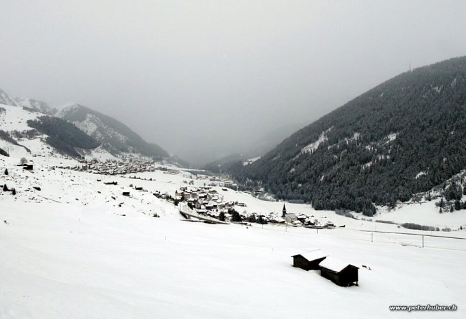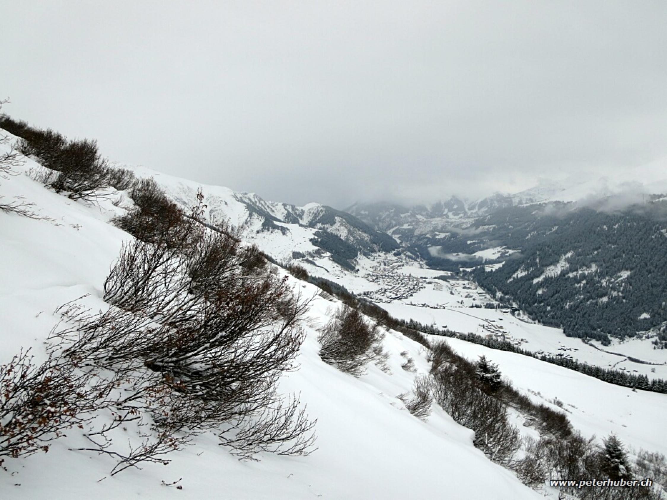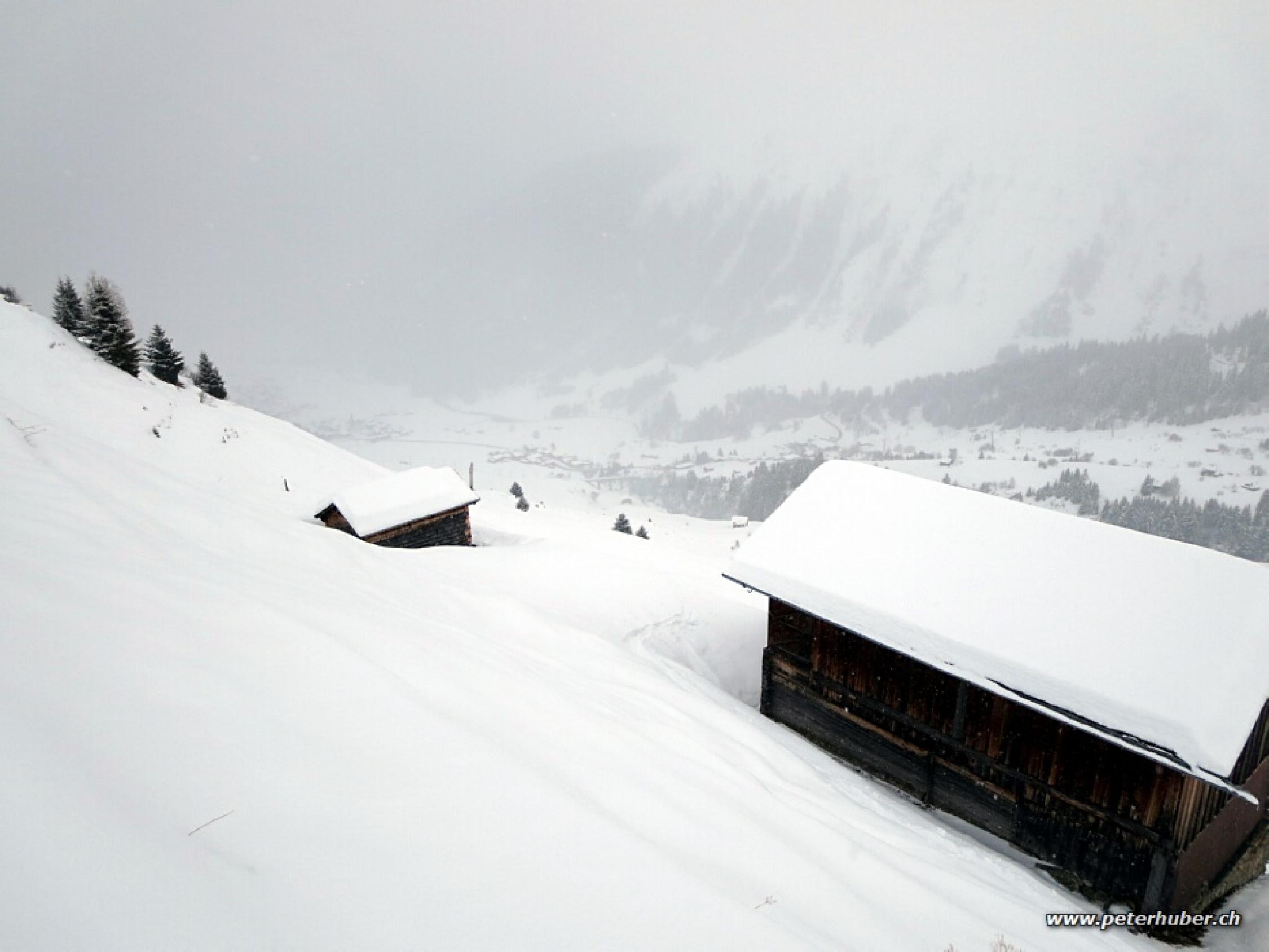 Zuerst leichter Schneefall und warm. Weiter oben eisiger Wind mit einigen scheuen Aufhellungen. Die Sicht für die Abfahrt war nicht so toll :-(