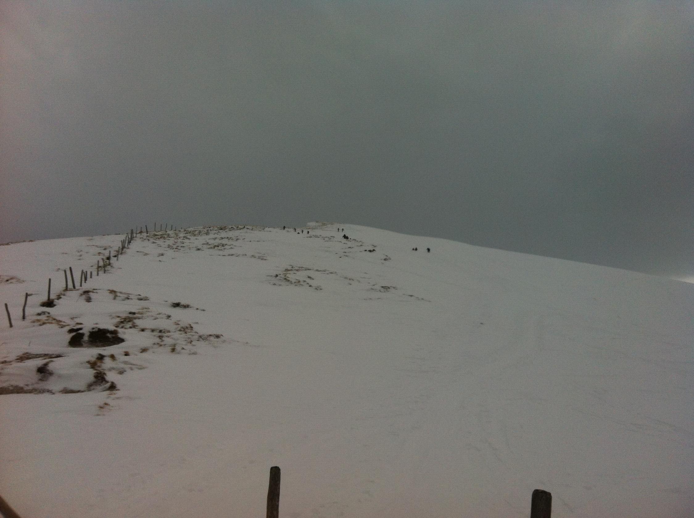 Aufstiegsspur sehr gut. Sicht schlechter als erwartet. Auf Gipfel etwas windig.