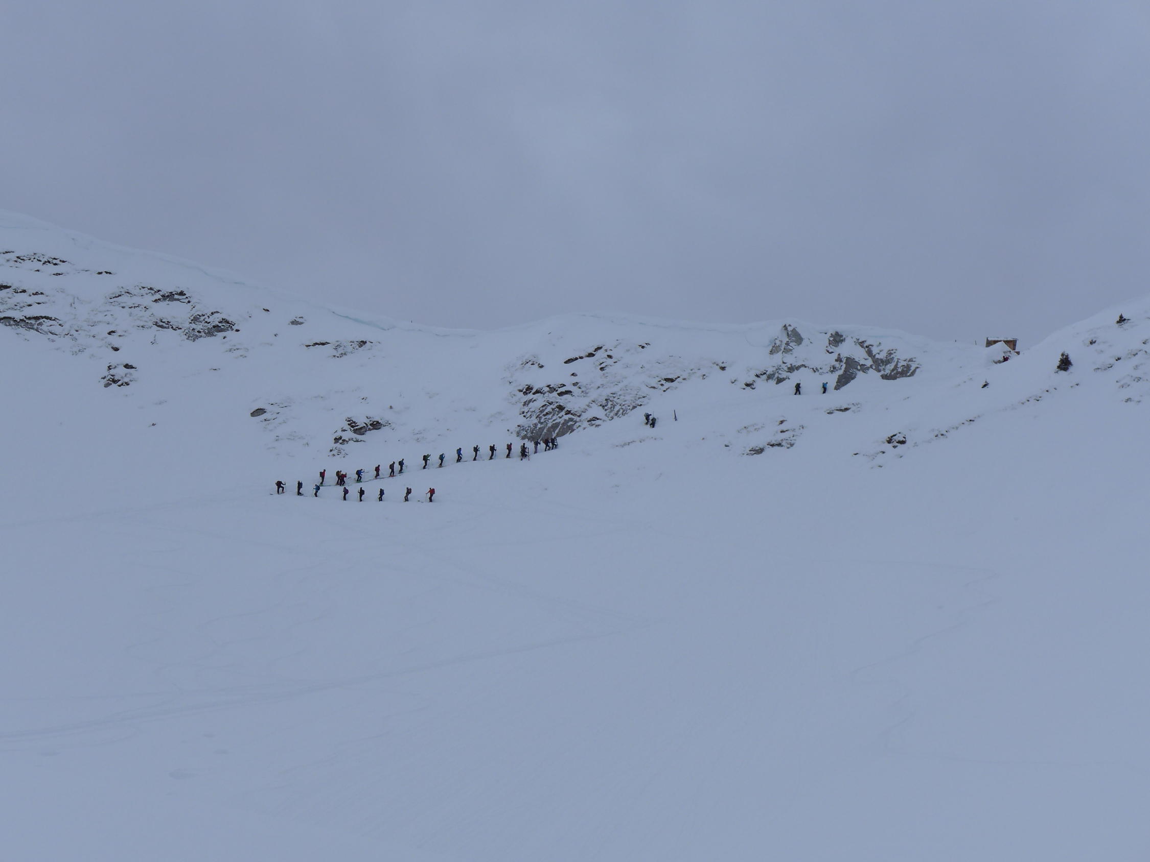 danach wiederaufstieg zur bürglen. etwas ärgerlicher stau am morgetenpass wegen zweier riesen truppen.