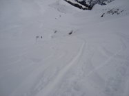 Einige Lockerschneerutsche unterhalb des Bandspitz.