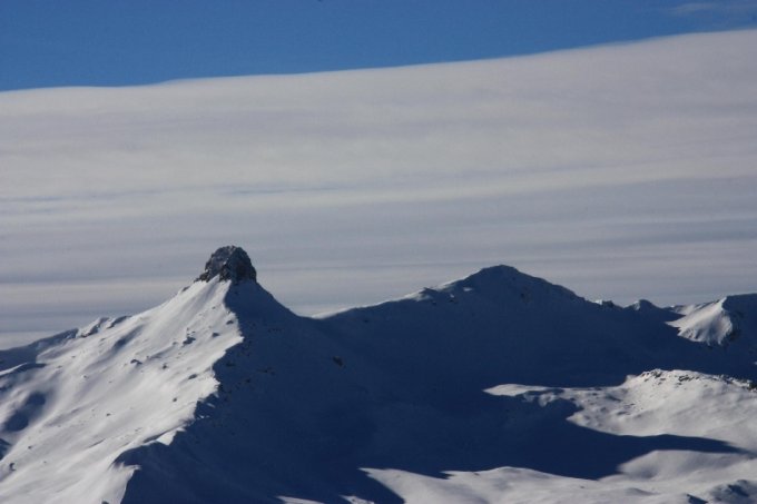 Gipfelhang: Triebschnee (relativ gefahrlos).