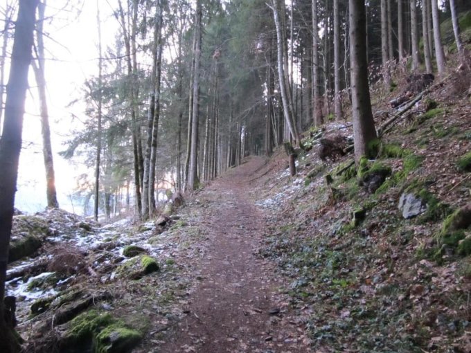 Locals und Insider sind gestern mit dem PKW noch ein Stück weit den Alpweg im Rütiwald hochgefahren, um das Tragen der Skier zu vermeiden (ein Verbotsschild habe ich nicht gesehen)