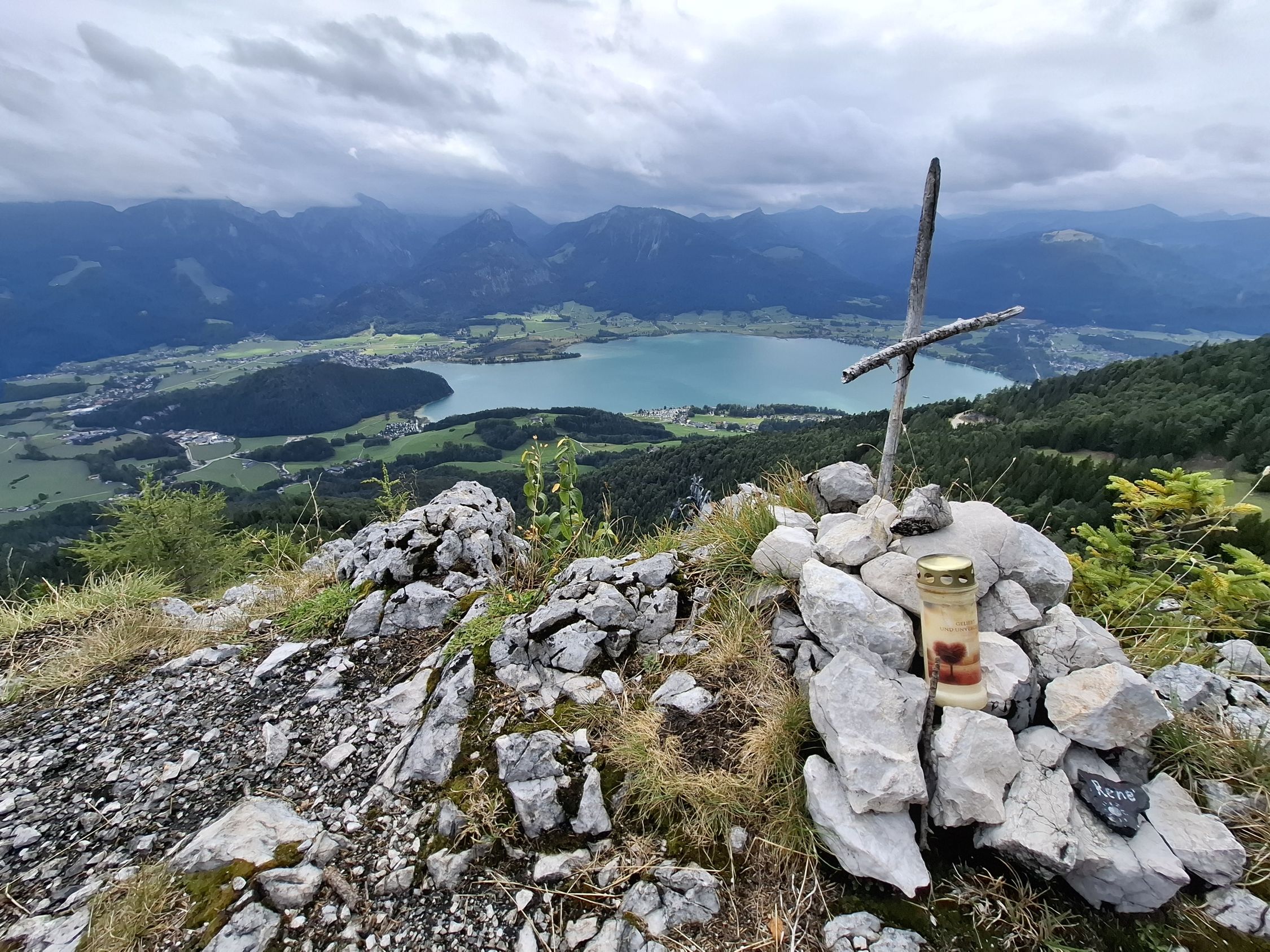 Sehr schöne Rundtour im Salzkammergut am Wolfgangsee auf zwei eher selten besuchte Gipfel, mit leichter Kletterei.