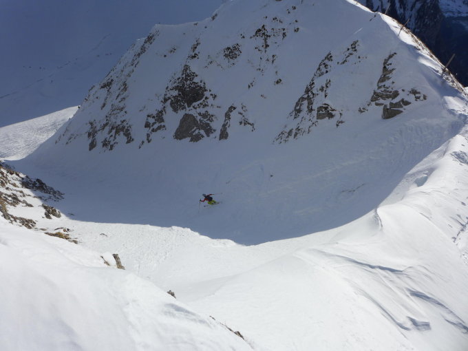 wiederaustieg über nordgrat zum bunkercouli. per pedes ohne ski hurti das seil holen gegangen an der westcoulieinfahrt. auch hier noch einfach gute Verhältnisse, wenn auch seit gestern bereits einige mehr runter gecruist sind :)