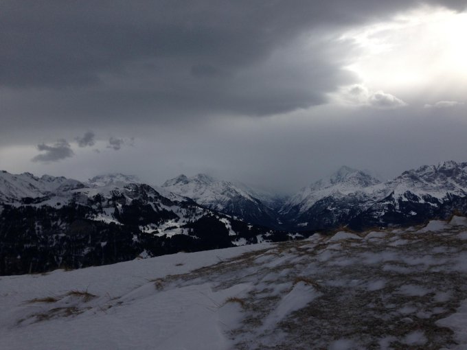 Ab Hinter Brosmatt hat es genügend Schnee; Schnee auf der Strasse wurde am 18.1.14 Opfer des Föhns. Schneeverhältnisse bei der Abfahrt wechselhaft.