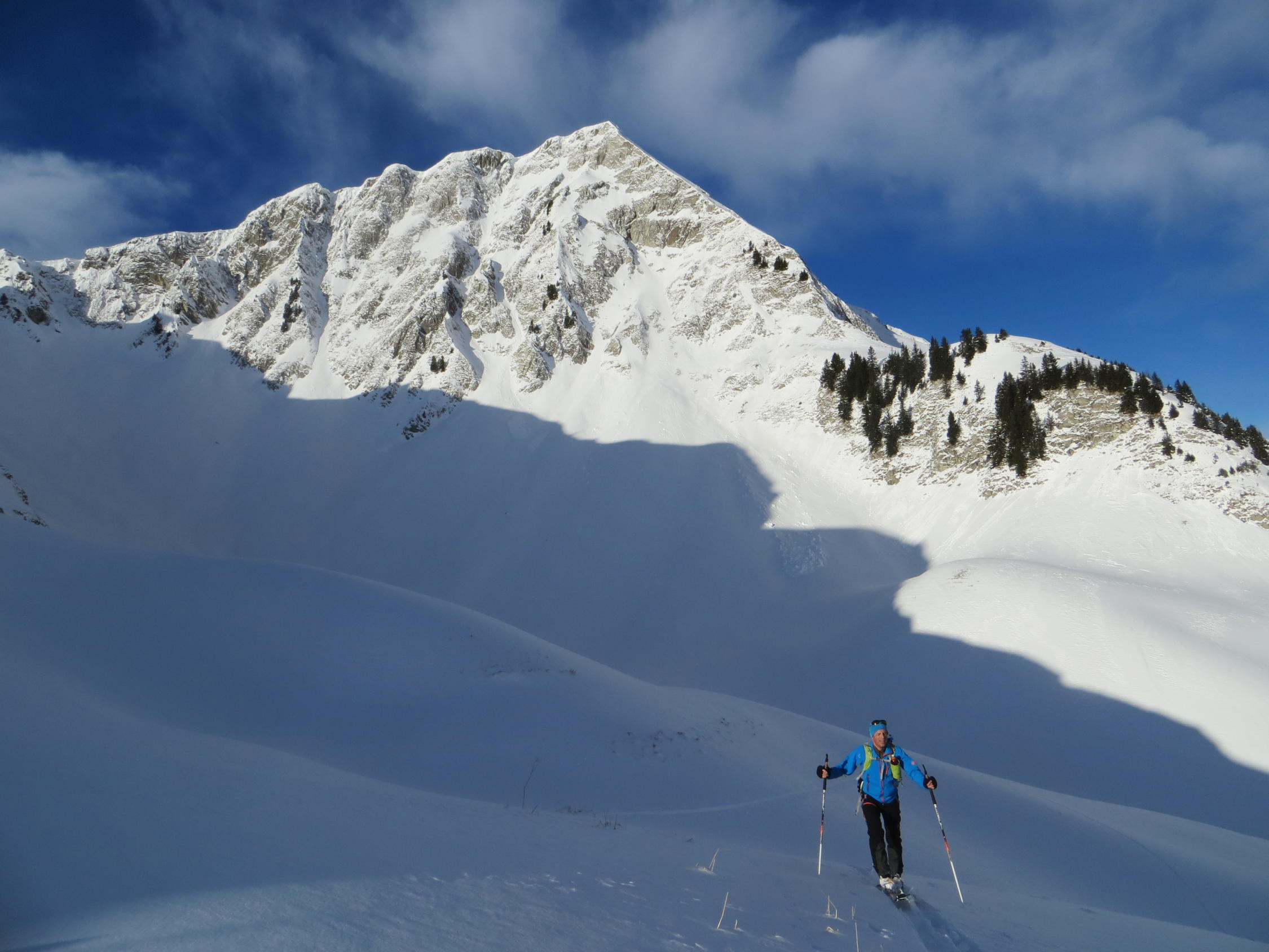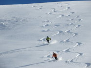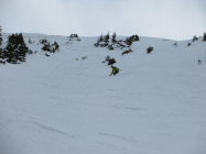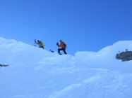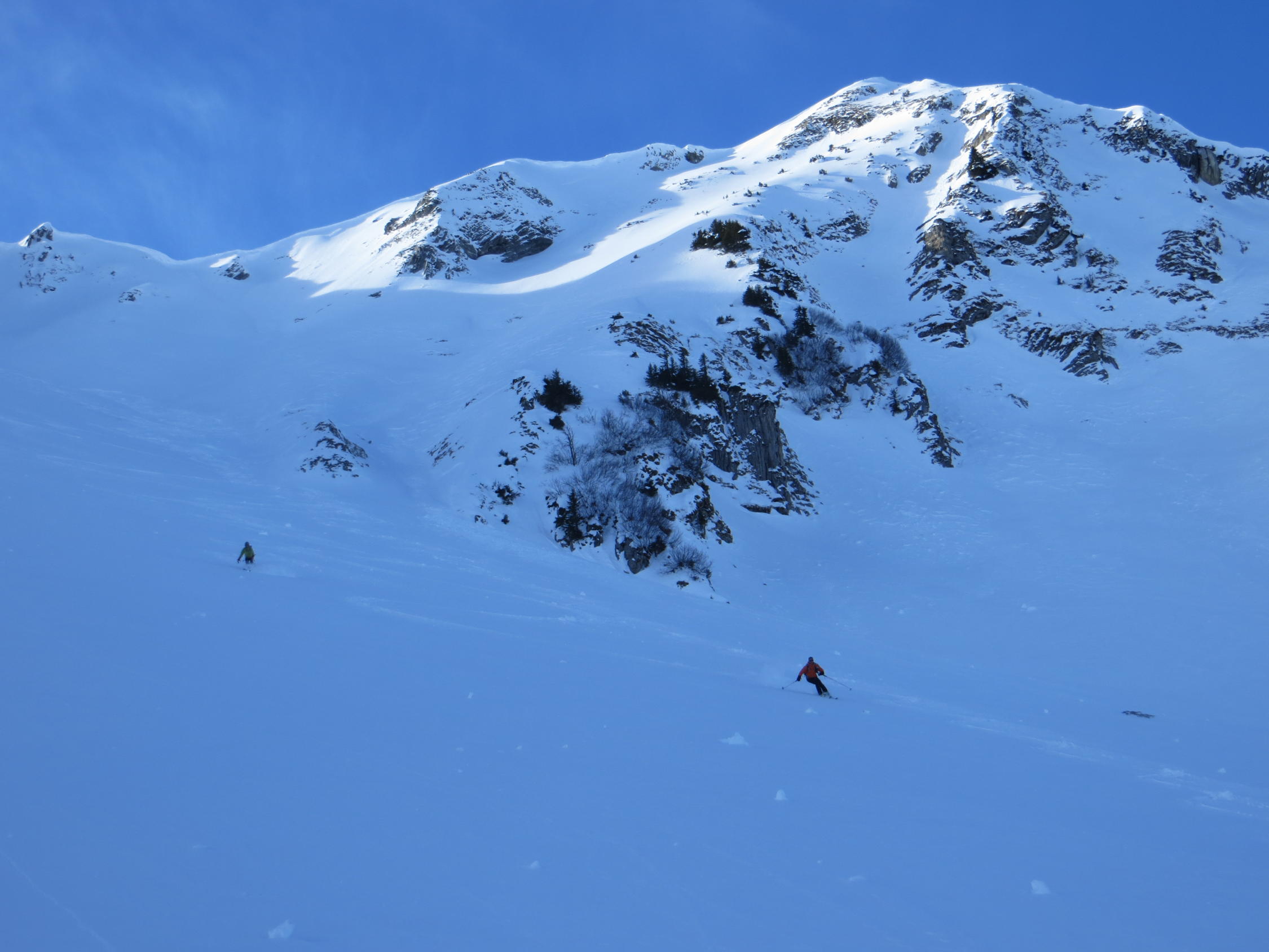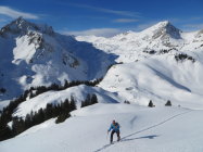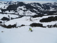 Südseitig rasch feucht, nordseitig überall guter Pulver , ausser in der Widdergalm Nordwestflanke, wo der Wind in der oberen Hälfte den Schnee stark gepresst hat.