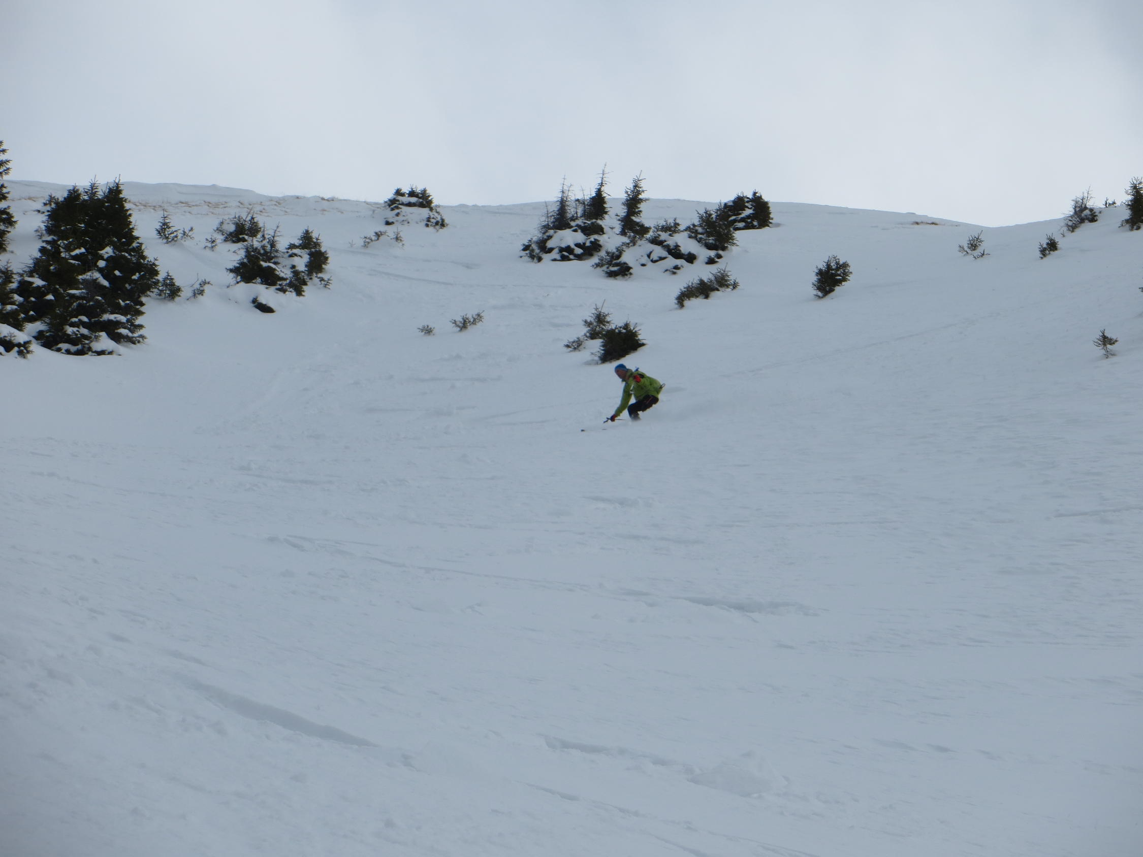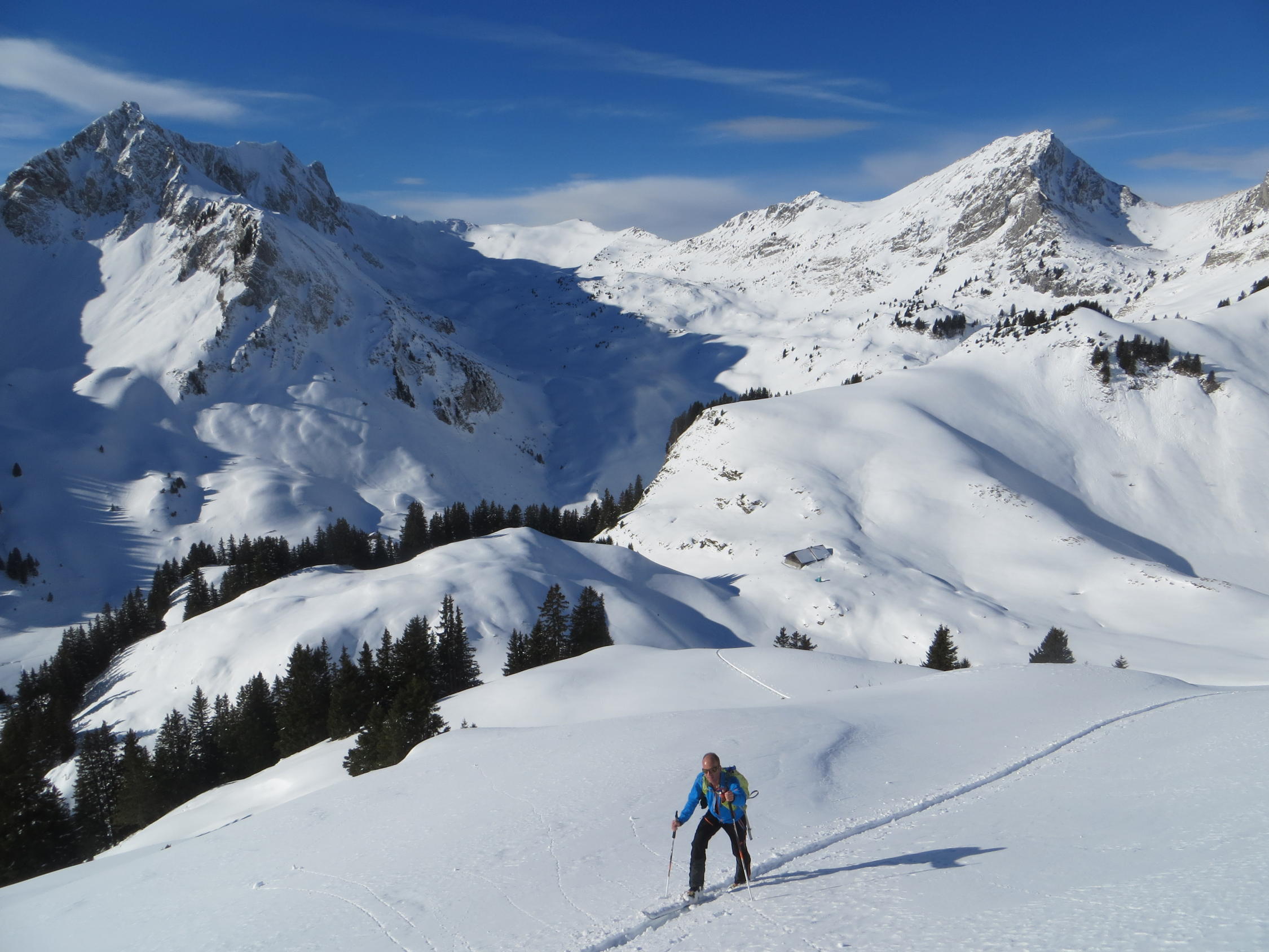 Haben eine 2150hm-Variante gemacht: Widdergalm per Chüearnisch und Ostgrat, dann Abfahrt ins Walop. Wiederaufstieg Südwestflanke bis Gipfel. Abfahrt Nordwest und Wiederaufstieg Chüearnisch - Schafarnisch. Abfahrt Schafarnisch über Nordmulde und Wiederaufstieg Richtung Märe bis Pkt. 1987. Abfahrt Westcouli bis runter zu Spittelgantrisch und zurück zum Parkplatz - sehr lohnenswerte Tour! Widdergalm mussten wir (wieder mal) überall spuren (alleine im Sektor) und auf Schafarnisch heute nur 3 Personen. Weiter nordwärts in der Gantrischkette Massentourismus...