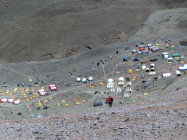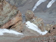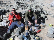 wenig Schnee: im Camp Cholera gibt es aber gerade noch genug zum Kochen; auf der Gipfeletappe liegt nur in der Traverse und in der Canaleta etwas Schnee, sonst alles ohne Steigeisen und Pickel machbar; allerdings viel Geröll und Sand (= mühsam);