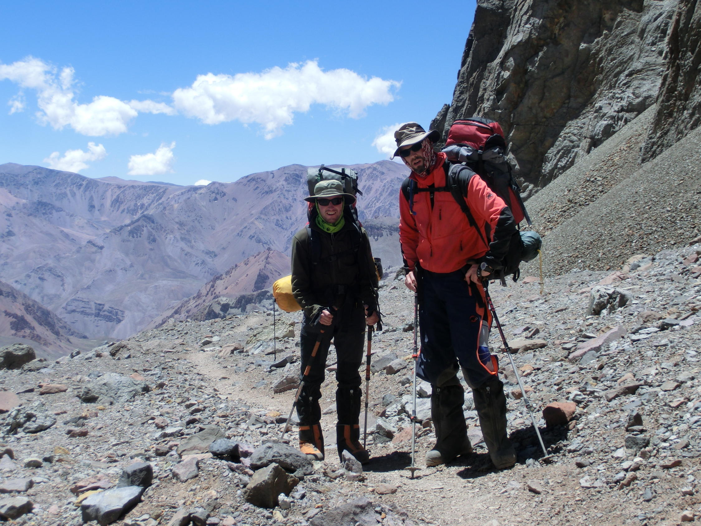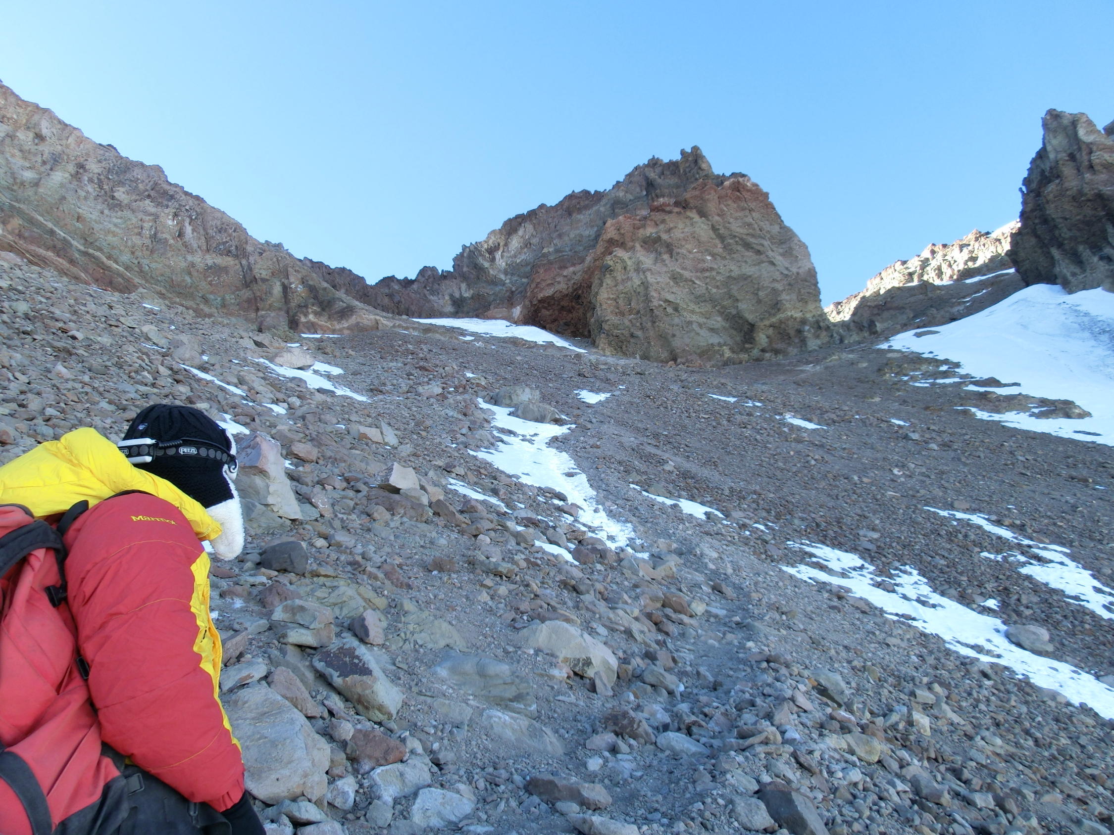 ich empfehle, auch die Überschreitung via falsche Polenroute zu machen, da wir im Abstieg zu Plaza de Mulas gesehen haben, wie mühsam hier der Aufstieg ist; Außerdem ist die Überschreitung landschaftlich viel schöner;