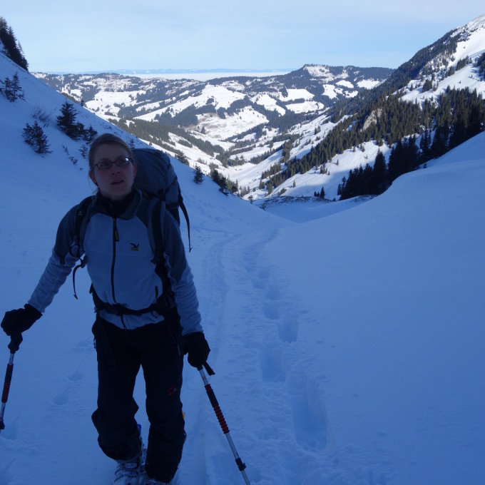 gut zu spurender Schnee,ausstieg etwas knapp desshalb auf grat ausgestiegen.