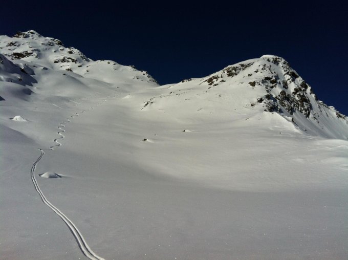 Nach der Abfahrt durch die N Rinne - Aufstieg zum Baslersch Chopf und dort ebenfalls traumhafter Schnee zum abfahren vorgefunden.